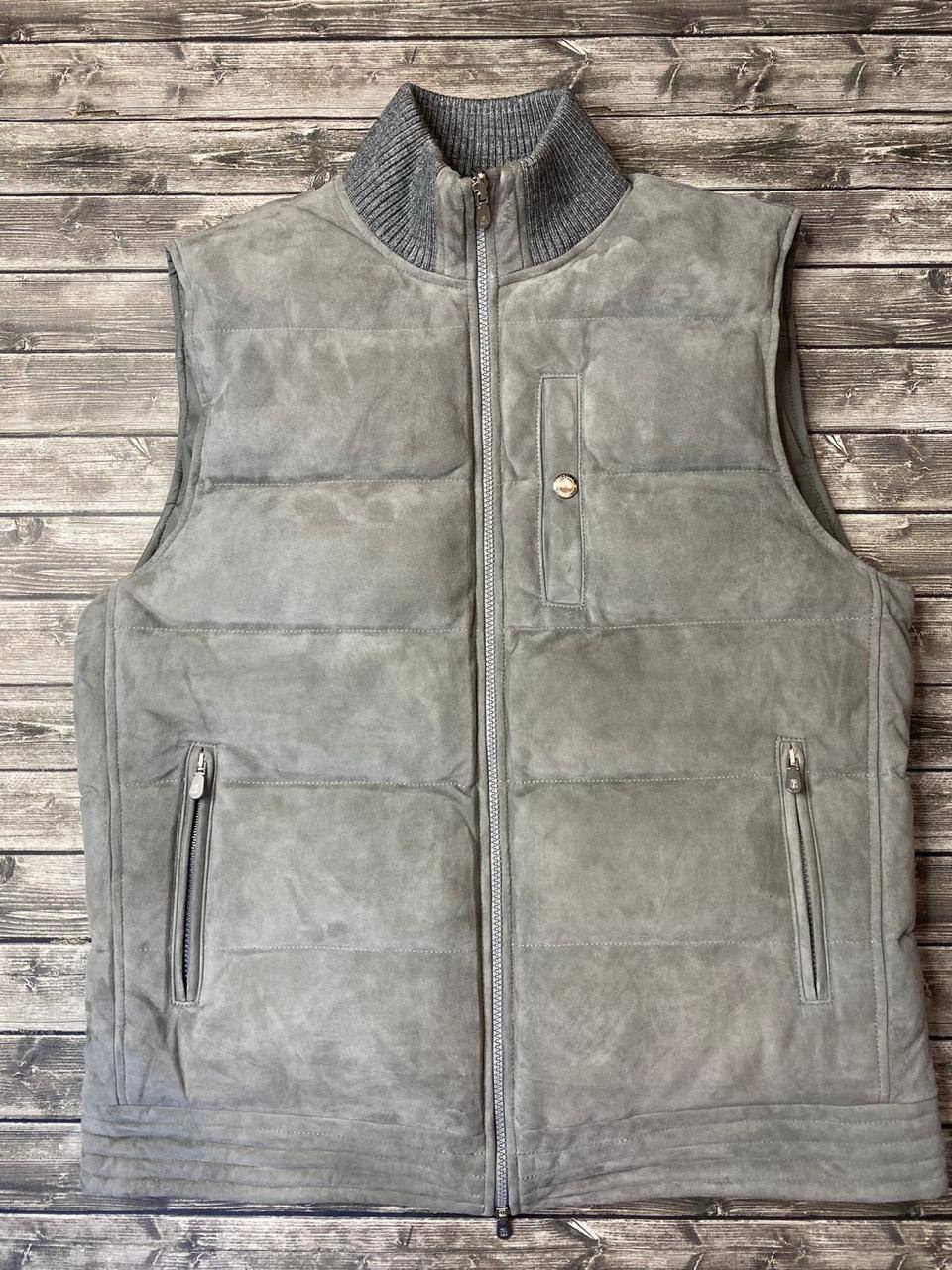 Жилет двухсторонний Brunello Cucinelli LUX-78372 – это стильный и функциональный предмет гардероба. Жилет выполнен в сером цвете, что делает его универсальным для различных образов. Его текстура выглядит мягкой и приятной на ощупь. Идеально подходит для создания многослойных образов в прохладную погоду.