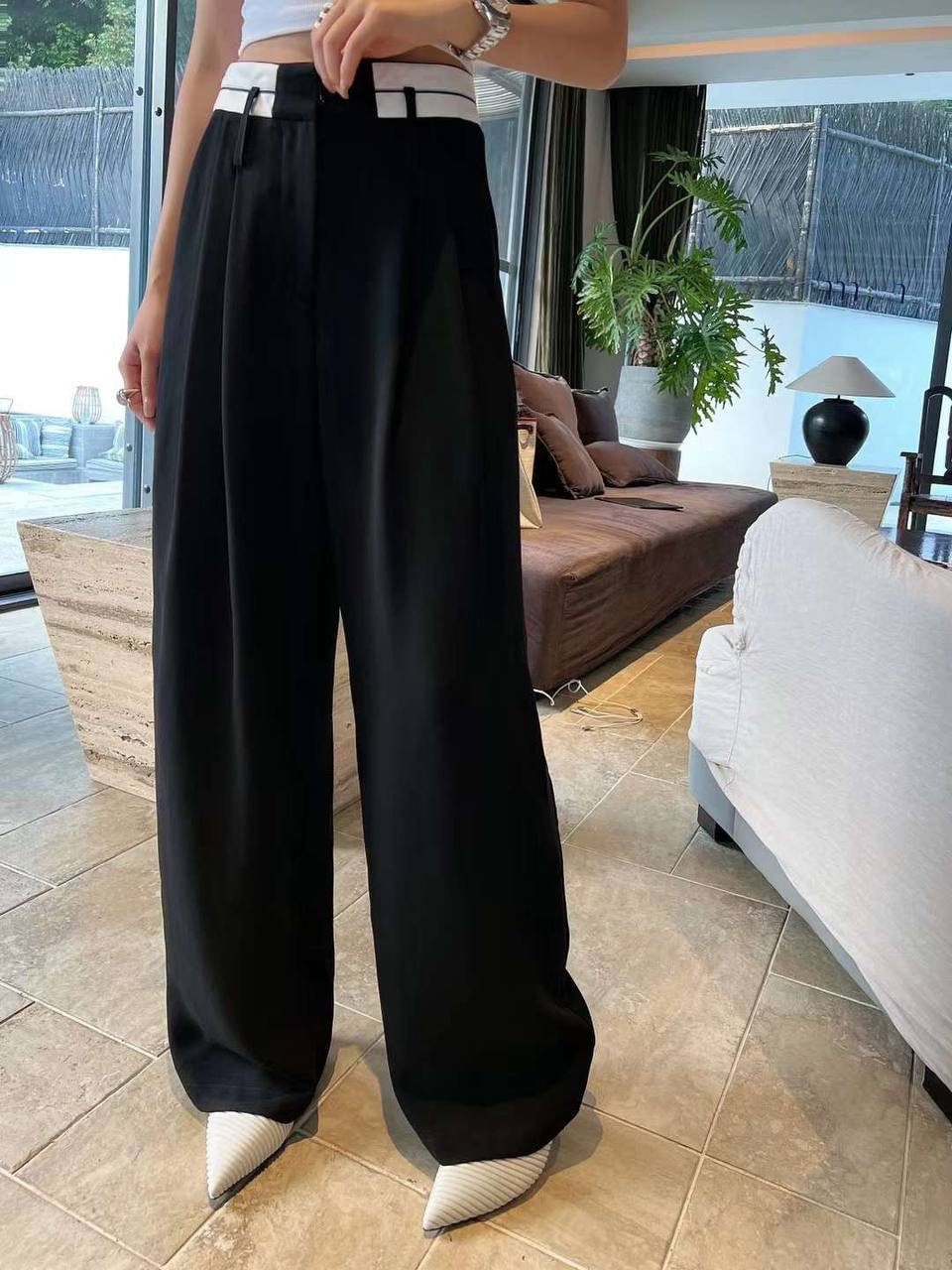 Брюки LUX-86324 - это стильные широкие брюки черного цвета с высокой посадкой и белым поясом. Они выполнены в классическом стиле, что делает их универсальным вариантом для создания различных образов. Эти брюки идеально подойдут для повседневной носки и для создания элегантных образов.