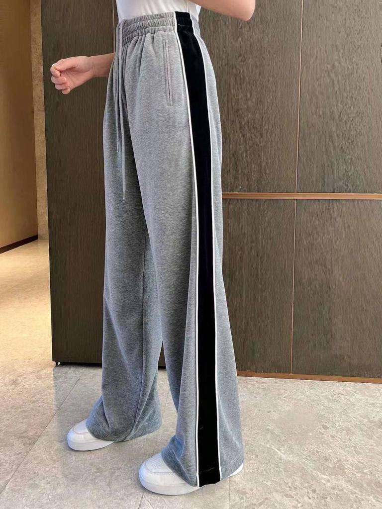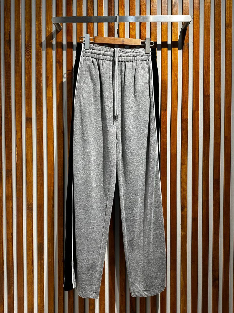 Брюки LUX-99462 - это комфортная и стильная модель, выполненная в спортивном стиле. Серый цвет ткани в сочетании с черной полосой вдоль штанины и белой окантовкой создают интересный визуальный эффект. Идеальный выбор для создания повседневного образа.