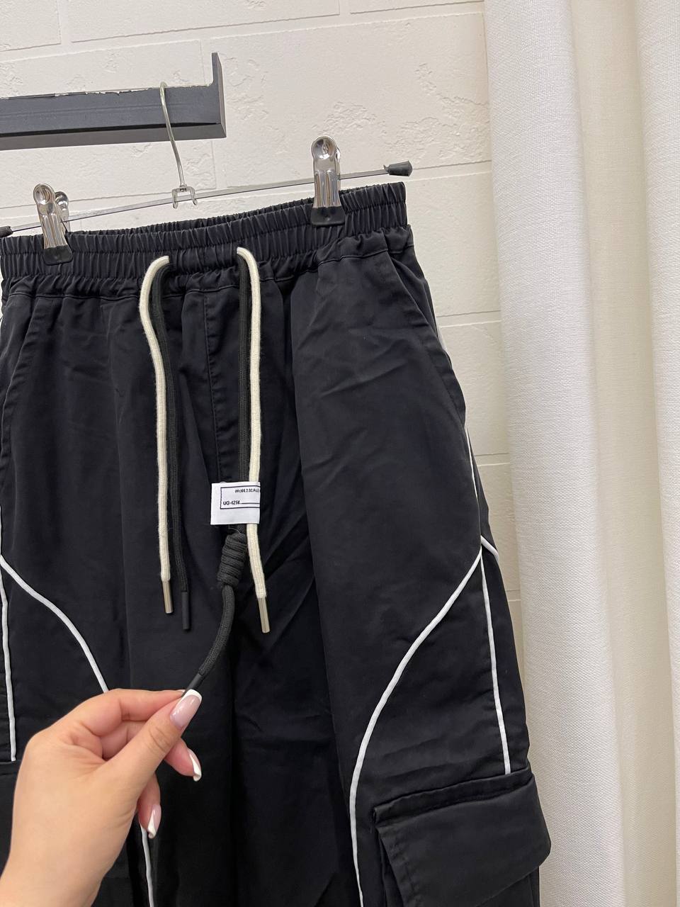 Брюки LUX-102122 - это стильные черные брюки с белыми контрастными линиями, добавляющими акцент. Модель выполнена в спортивном стиле с элементами милитари, что делает их подходящими как для повседневной носки, так и для активного отдыха.
