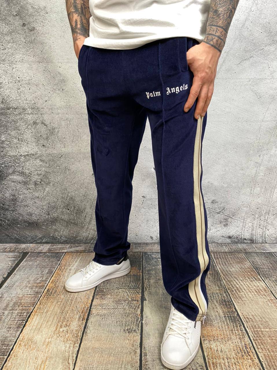 Эти брюки LUX-50142 от Palm Angels сочетают в себе спортивный стиль и комфорт. Модель выполнена из мягкой ткани, приятной к телу, что делает их идеальным выбором для повседневной носки. Классический синий цвет и контрастные лампасы по бокам придают изделию современный вид. Брюки станут отличной основой для создания расслабленных образов.