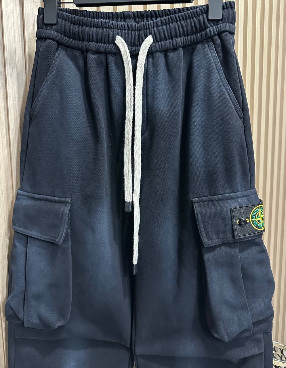 Брюки Stone Island LUX-113963 — это стильные брюки карго, выполненные в классическом стиле. Темно-синий цвет создает универсальный образ, который легко сочетается с различными элементами гардероба. Текстура ткани придает брюкам современный вид.