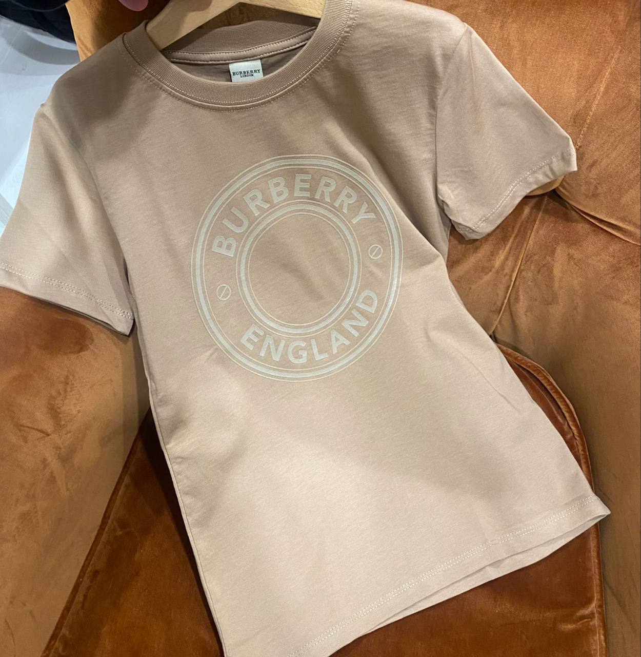 Футболка Burberry LUX-83532 – это стильный предмет гардероба от известного бренда. Данная футболка выполнена в спокойном бежевом цвете с крупным логотипом бренда на груди. Отлично подойдет для создания повседневных образов.