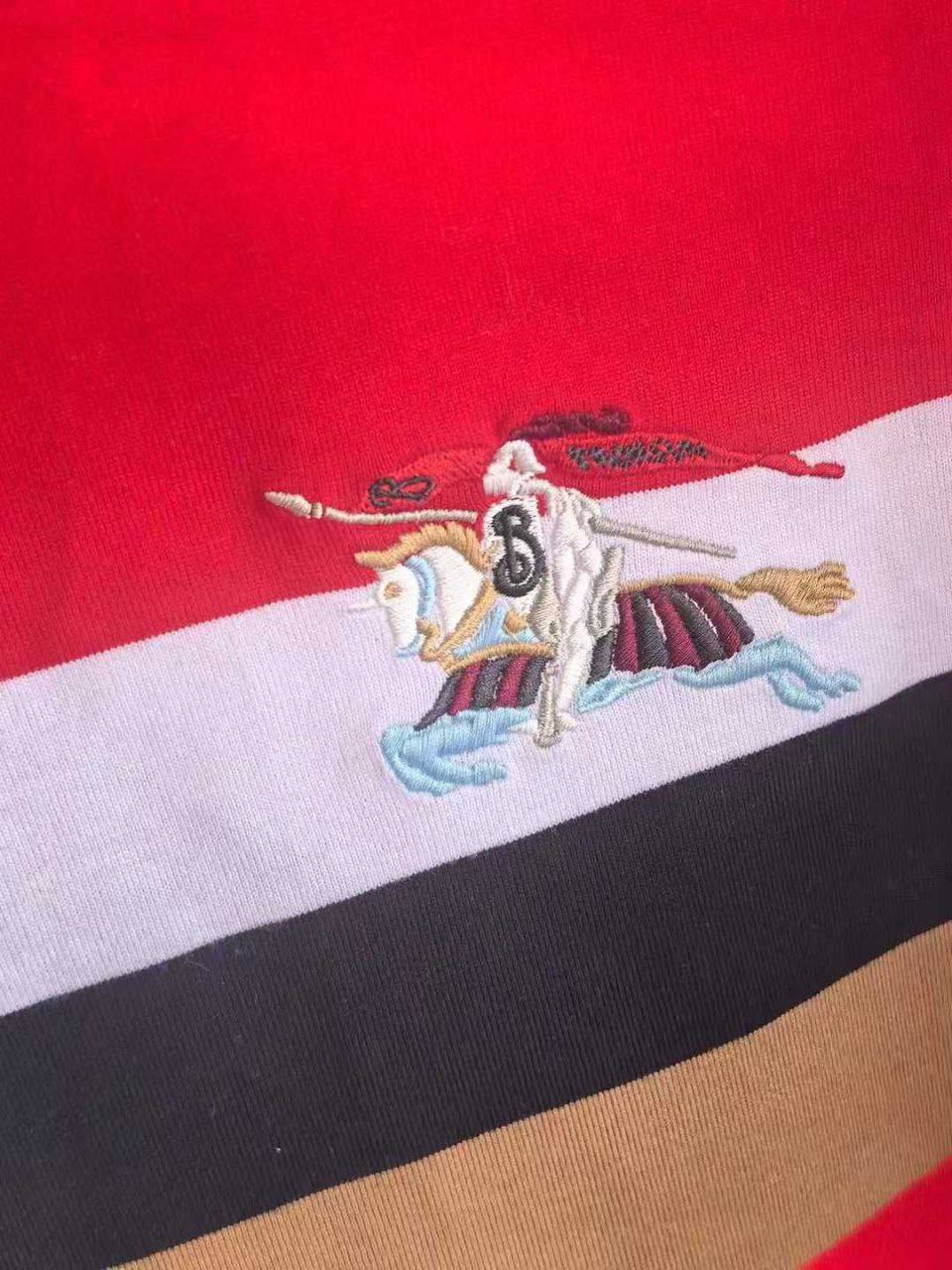 Футболка Burberry LUX-130131 - это стильная футболка с короткими рукавами и круглым вырезом горловины, выполненная в ярком красном цвете. Оригинальный дизайн с горизонтальными полосами и вышивкой делает ее прекрасным дополнением к повседневному гардеробу.