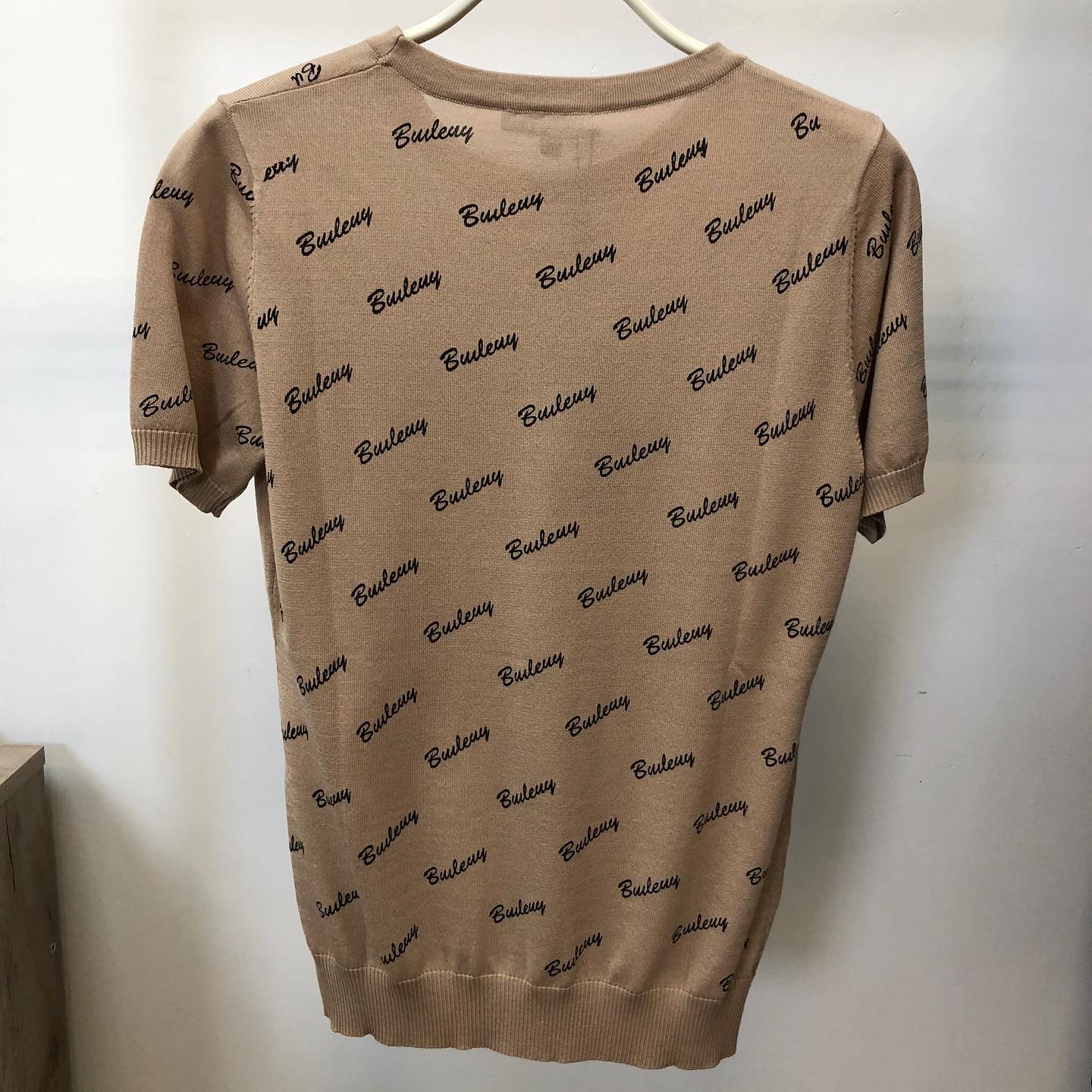 Футболка женская Burberry LUX-34475 представляет собой элегантную модель из трикотажа, выполненную в классическом стиле. На изделии нанесен повторяющийся принт с названием бренда, что придает ей узнаваемость и роскошный вид. Данная футболка идеально подходит для создания стильных повседневных и вечерних образов.
