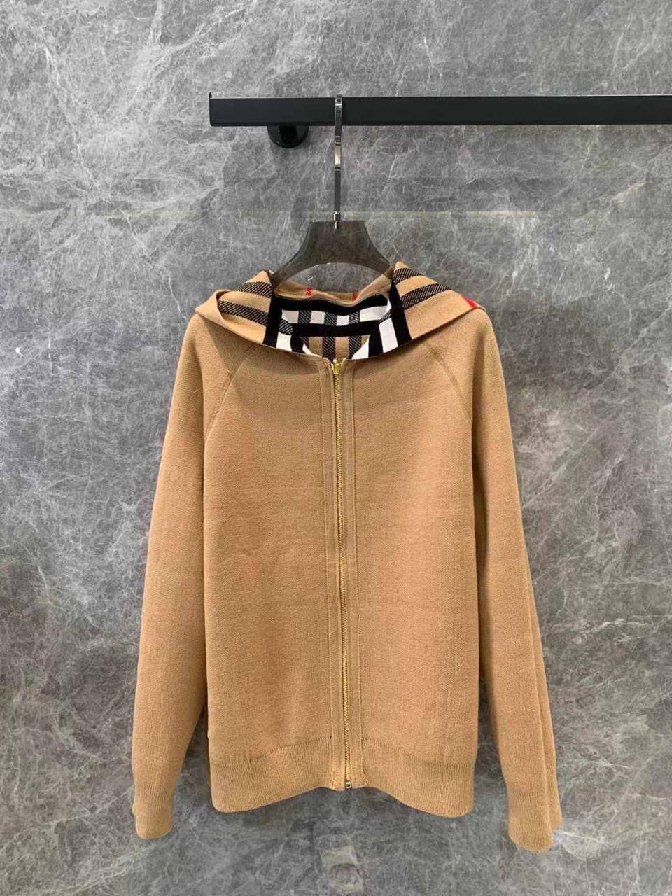 Кардиган Burberry LUX-110690 – это стильный предмет гардероба с классическим дизайном. Кардиган выполнен в бежевых тонах с узнаваемым клетчатым узором, характерным для бренда. Он имеет удобный крой с капюшоном и застежкой-молнией.