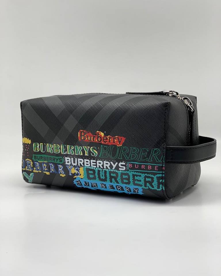 Эта косметичка Burberry СМ-821 представляет собой стильный аксессуар в современном дизайне. Она выполнена в черном цвете с контрастным принтом, содержащим множество логотипов бренда Burberry, что подчеркивает ее эксклюзивность. Удобная ручка и компактный размер делают ее идеальным спутником как в поездках, так и для организации косметики дома.