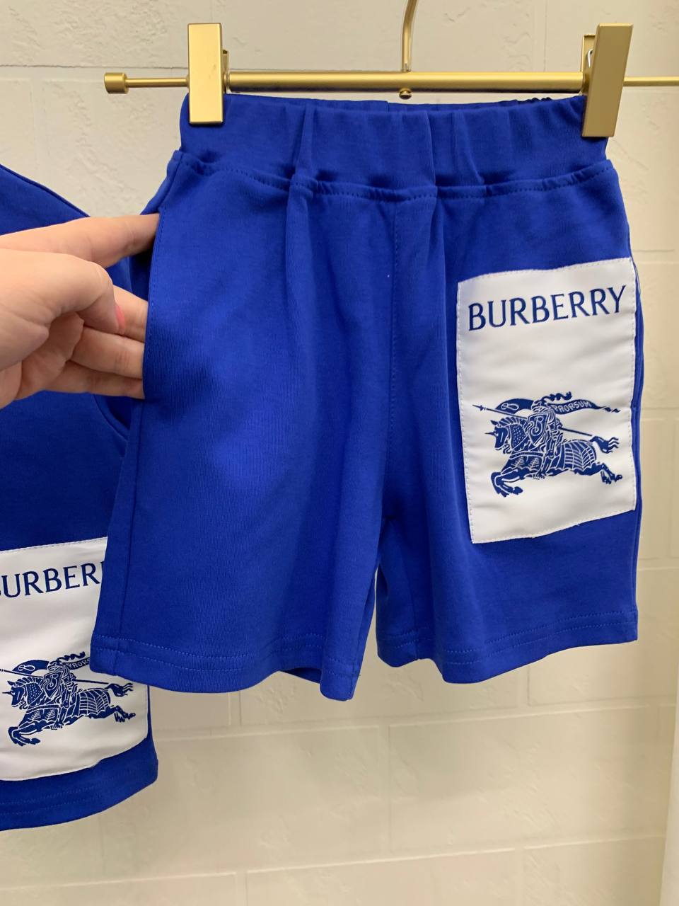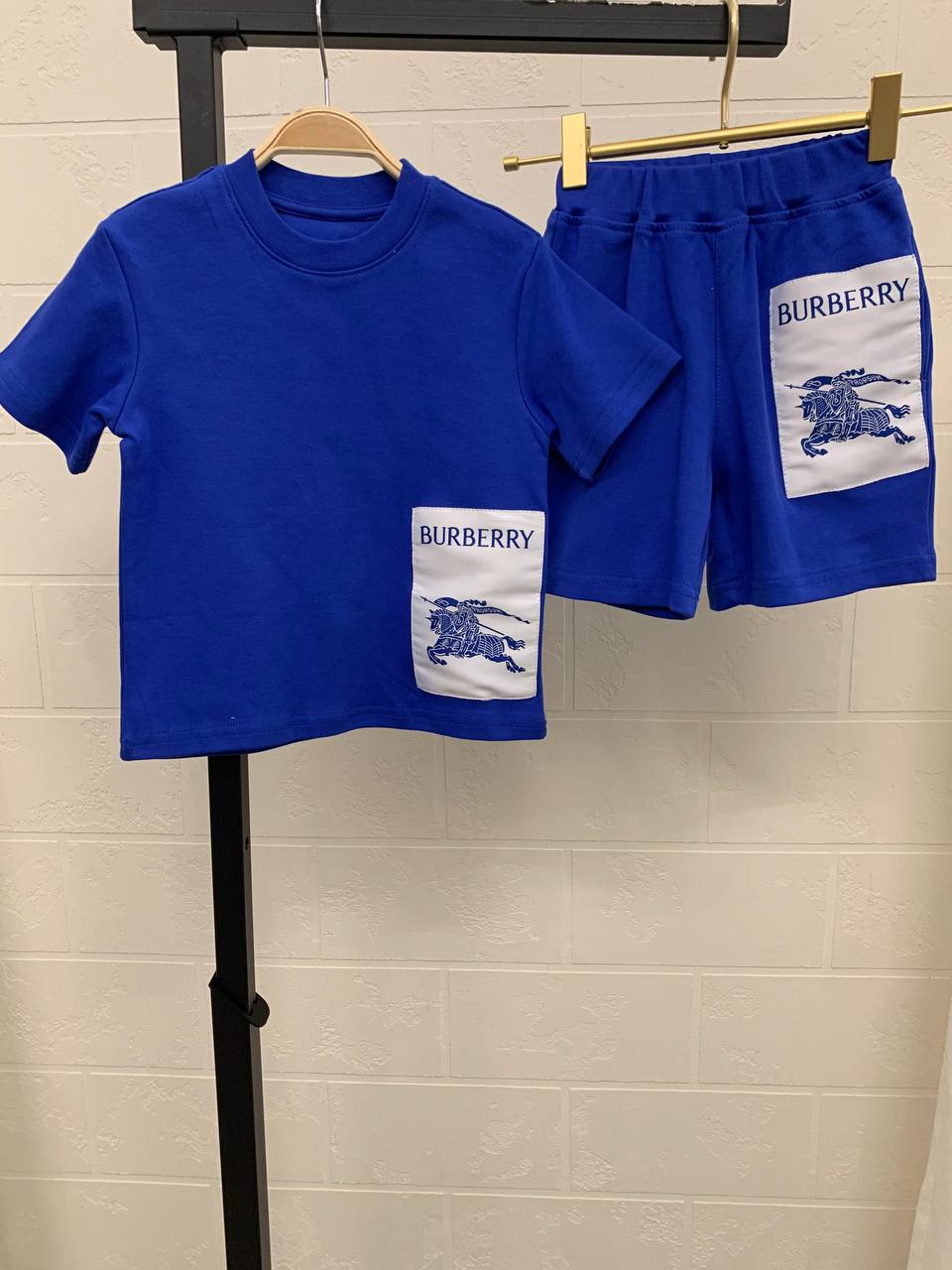 Костюм Burberry LUX-104730 — это стильный комплект для детей от известного бренда. Состоит из футболки и шорт синего цвета, украшенных фирменными нашивками с логотипом. Этот комплект идеально подходит для повседневной носки в теплое время года, обеспечивая комфорт и свободу движений.