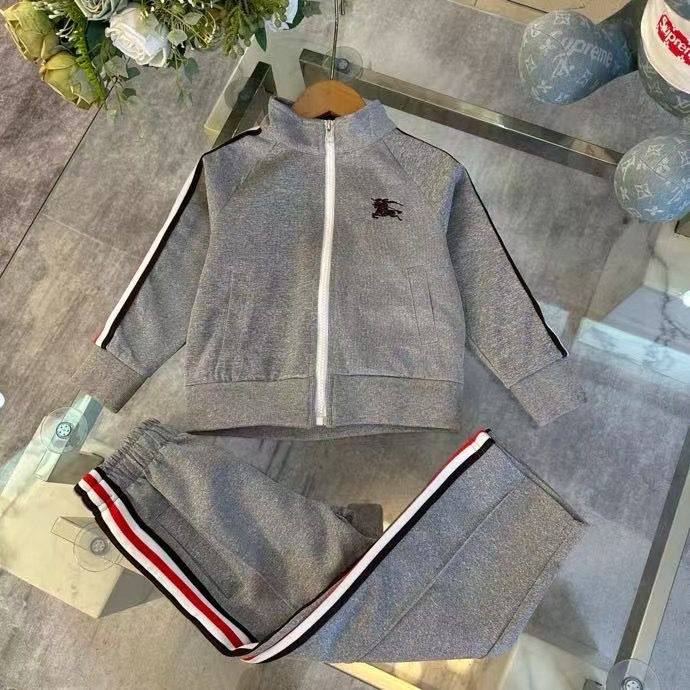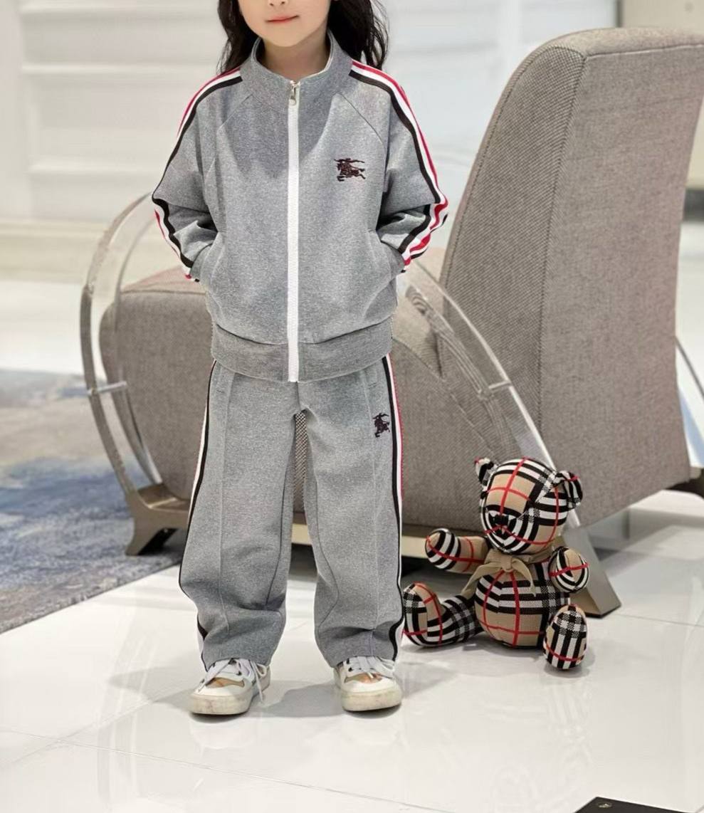 Костюм Burberry LUX-117051 — это стильный спортивный костюм для детей, выполненный в фирменном стиле бренда. Серый костюм с контрастными полосами на рукавах и штанинах, а также фирменным логотипом. Костюм предназначен для повседневной носки, прогулок и активного отдыха.