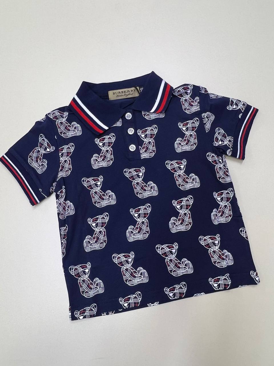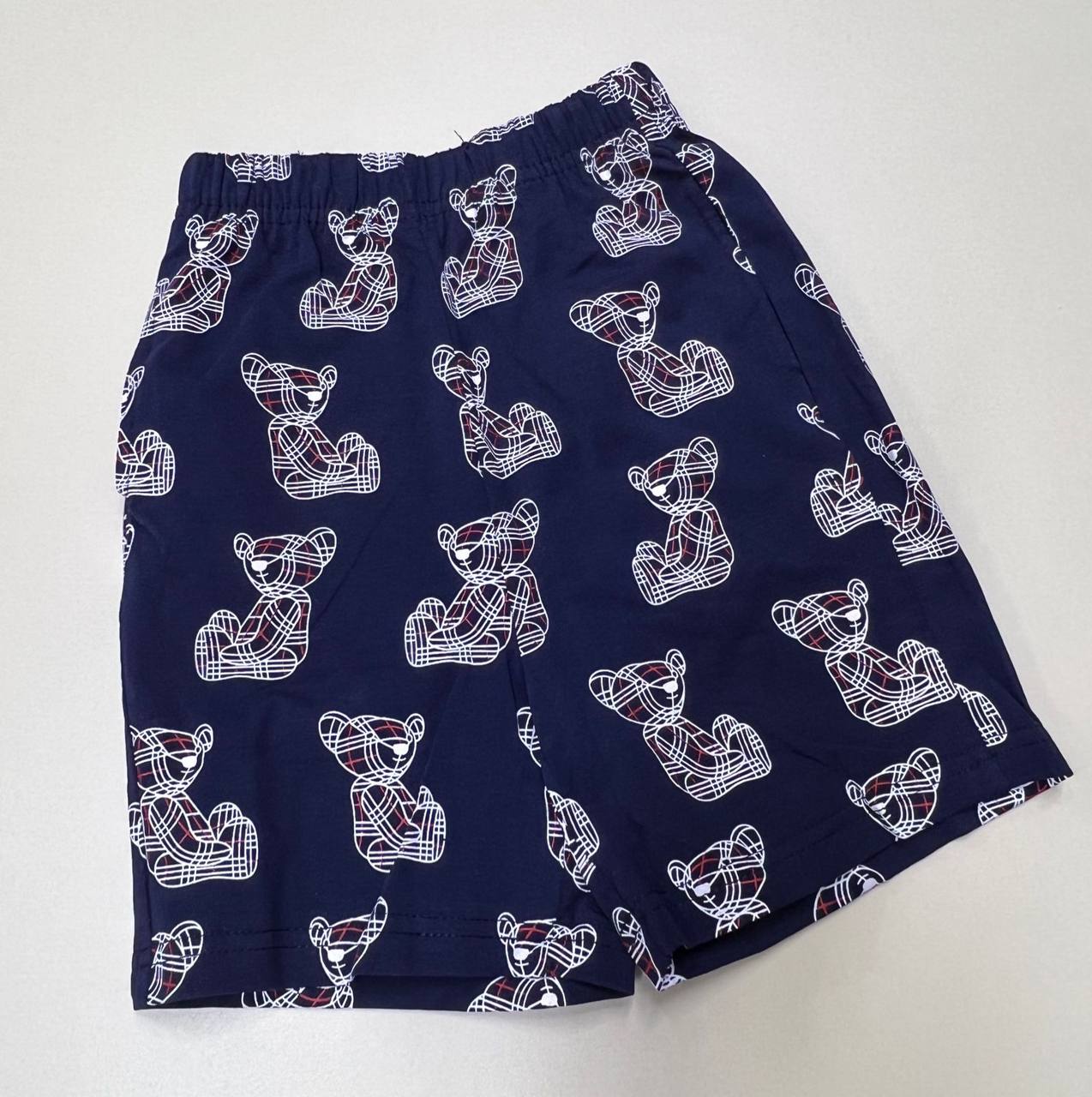 Костюм Burberry LUX-90011 представляет собой летний комплект, выполненный в темно-синем цвете с принтом мишек. Комплект состоит из рубашки поло и шорт. Стиль костюма - повседневный, но узнаваемый благодаря фирменному принту.