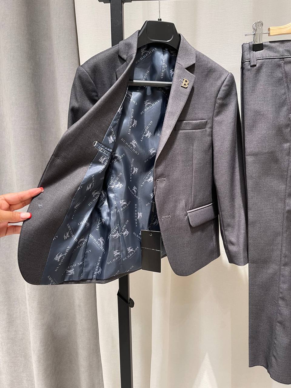 Костюм Burberry LUX-122678 представляет собой стильный и элегантный комплект, состоящий из пиджака и брюк. Идеальный выбор для деловых встреч и особых случаев, подчеркивающий изысканный вкус своего обладателя.