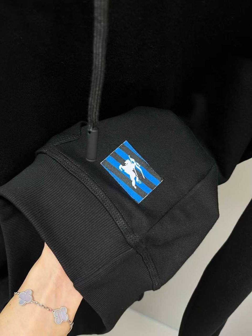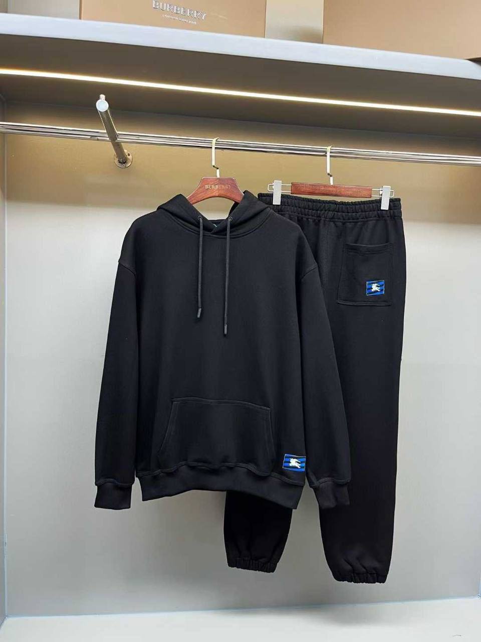 Костюм спортивный Burberry LUX-113851 - это комплект, состоящий из худи с капюшоном и спортивных штанов, выполненный в черном цвете. Он представляет собой современный спортивный стиль с элементами узнаваемого дизайна бренда. Этот костюм идеально подходит для создания комфортных образов в повседневной жизни.