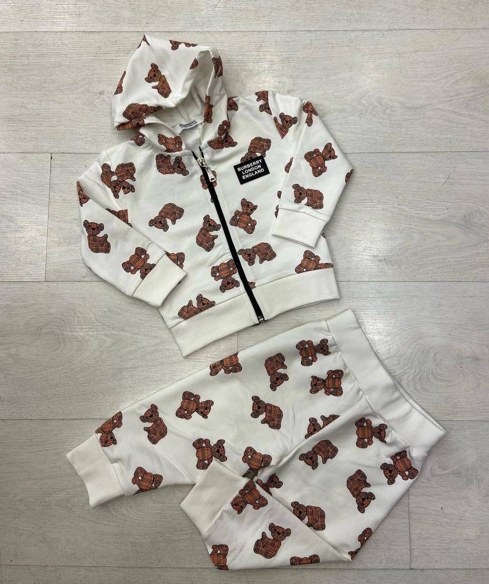 Костюм спортивный Burberry LUX-81106 представляет собой стильный и комфортный спортивный костюм для детей. Комплект состоит из худи с капюшоном на молнии и брюк. Костюм выполнен в белом цвете с ярким принтом в виде медвежат, что делает его привлекательным для юных модников.