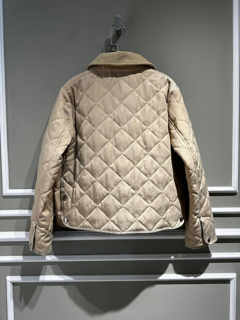 Куртка Burberry LUX-82952 – это стильная стеганая куртка бежевого цвета, выполненная в классическом стиле. Она имеет ромбовидный узор, вельветовый воротник и два накладных кармана. Идеально подходит для создания элегантных и повседневных образов.
