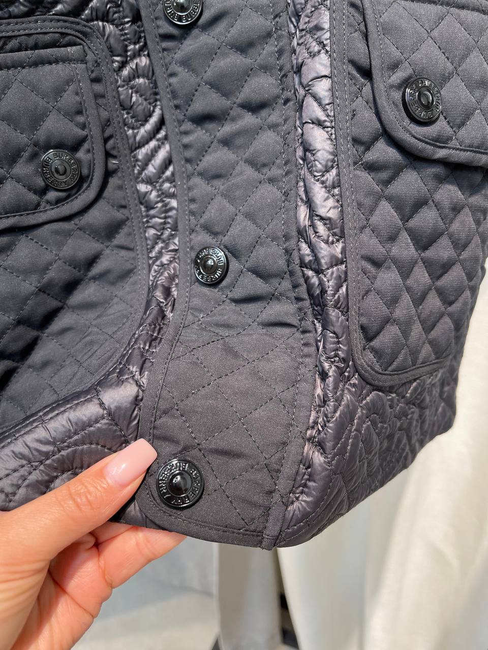 Стильная куртка Burberry с капюшоном и декоративной стежкой, идеально подходящая для создания элегантных образов в прохладную погоду. Она сочетает в себе классический дизайн и современные тенденции.