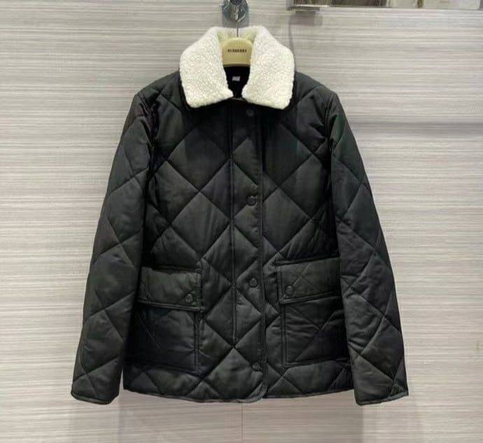 Куртка женская Burberry LUX-75938 - это стеганая куртка классического дизайна в стиле бренда. Куртка выполнена в черном цвете с белым воротником. Она подойдет для повседневной носки в прохладную погоду, обеспечивая комфорт и стиль.