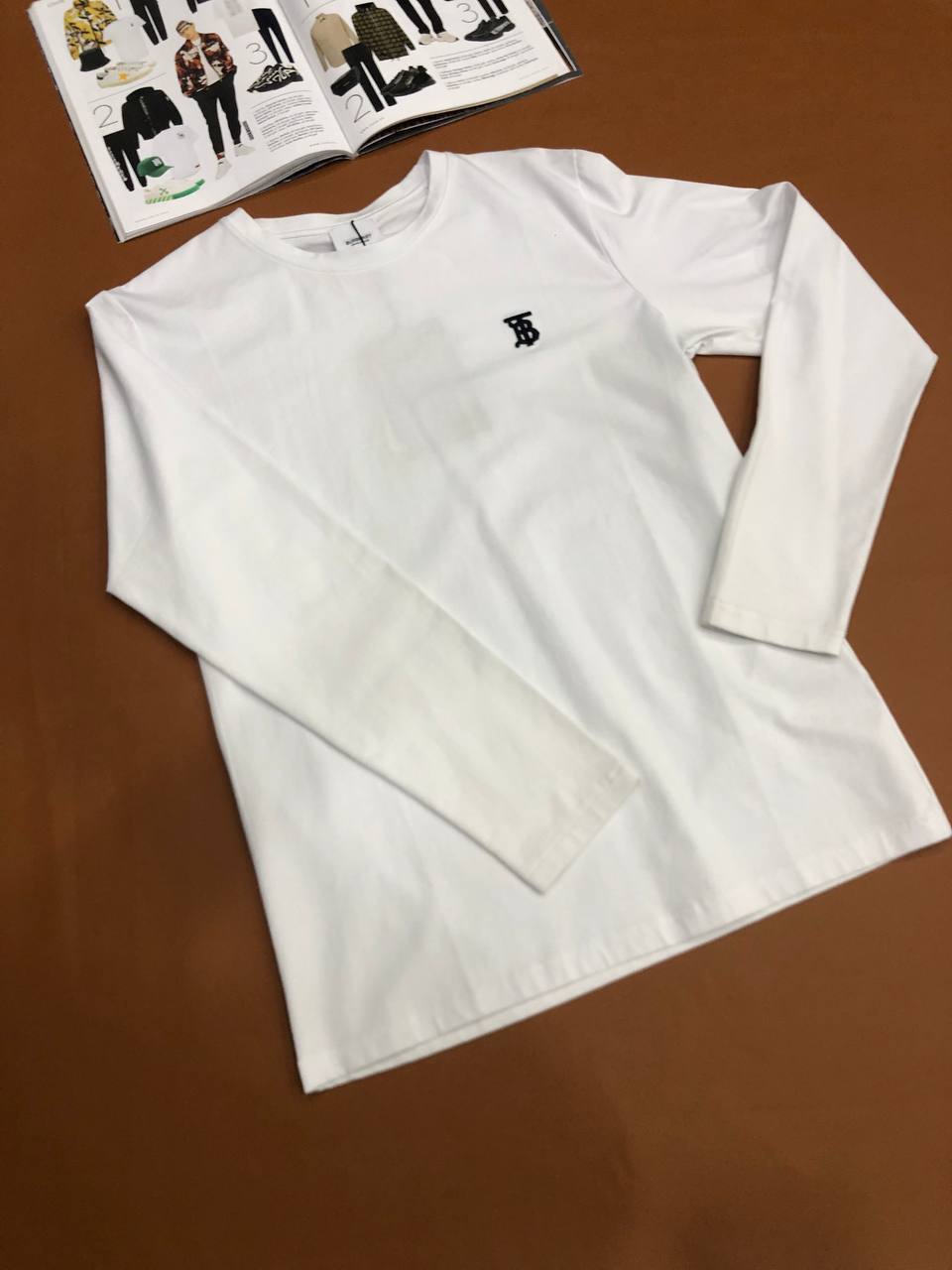 Лонгслив Burberry LUX-66112 – это стильная и элегантная модель, выполненная в классическом белом цвете. Изделие украшено лаконичным черно-серым принтом с монограммой бренда. Лонгслив идеально подойдет для создания как повседневных, так и более изысканных образов.