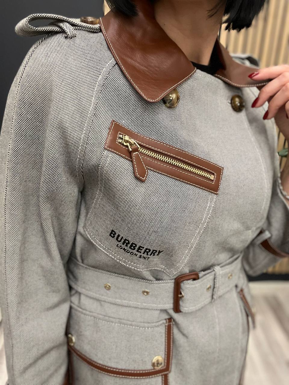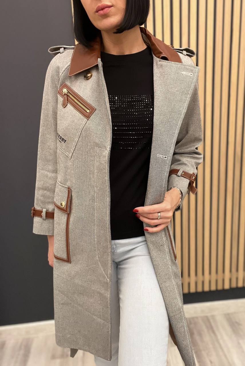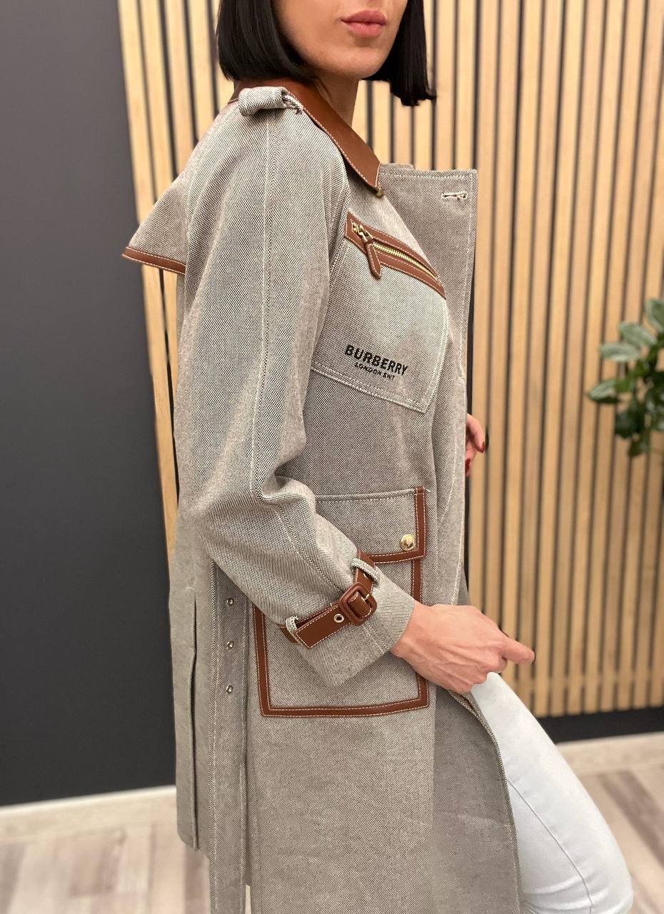 Пальто Burberry LUX-103365 — это стильное женское пальто от Burberry, которое сочетает в себе элегантность и функциональность. Пальто выполнено в классическом стиле с современными деталями. Светлый оттенок изделия, дополнен коричневыми кожаными вставками, делают его подходящим для различных образов.