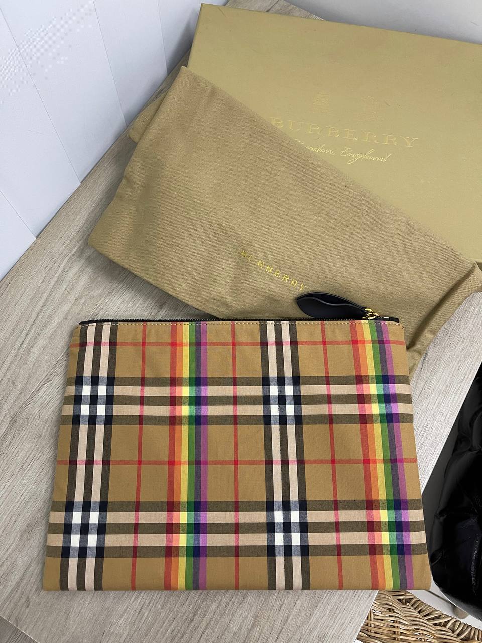 Папка Burberry LUX-80309 представляет собой стильный аксессуар в фирменном клетчатом стиле бренда. Классический узор в сочетании с яркими радужными полосами добавляет оригинальности. Идеально подходит для хранения документов и повседневных мелочей.