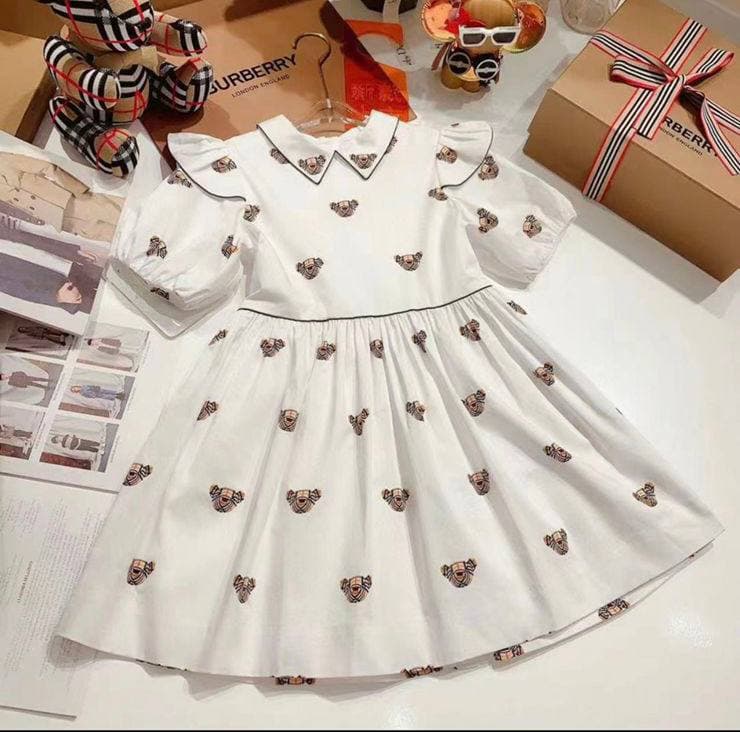 Платье Burberry LUX-61282 – это очаровательное белое платье для девочек, украшенное милыми принтами в виде медвежат. Классический воротник и пышная юбка придают ему элегантный, но в то же время игривый вид. Рукава-фонарики добавляют образу утонченности. Это платье идеально подойдет для особых случаев или для создания стильного повседневного образа.