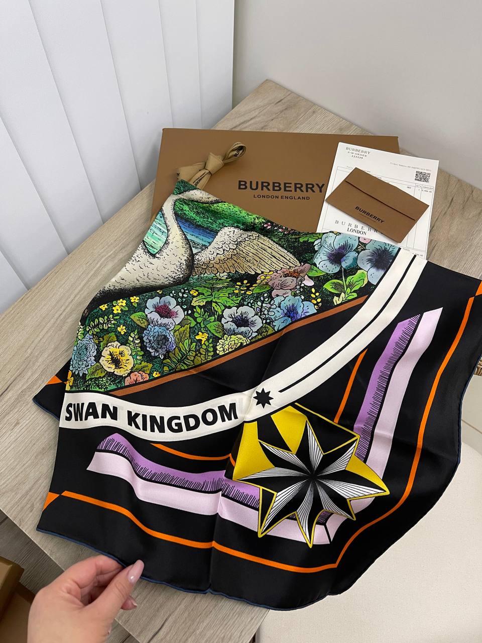 Представленный платок Burberry LUX-64668 является изысканным аксессуаром, демонстрирующим уникальный стиль бренда. Он украшен ярким принтом с изображением лебедя, цветов и абстрактных геометрических элементов, создавая ощущение роскоши и элегантности. Этот платок станет прекрасным дополнением как к повседневному, так и к вечернему образу.