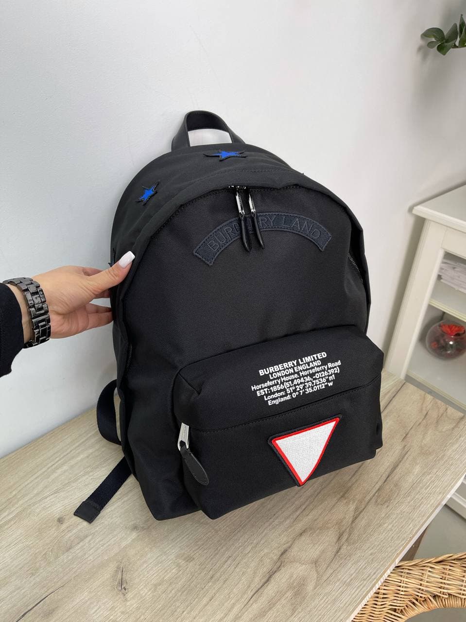 Рюкзак Burberry LUX-56324 представляет собой стильный аксессуар, выполненный в лаконичном черном цвете. Дизайн украшен контрастными синими звездами и эмблемой бренда, что придает ему узнаваемый вид. Этот рюкзак идеально подойдет для повседневного использования, сочетая в себе практичность и элегантность, присущие бренду Burberry.