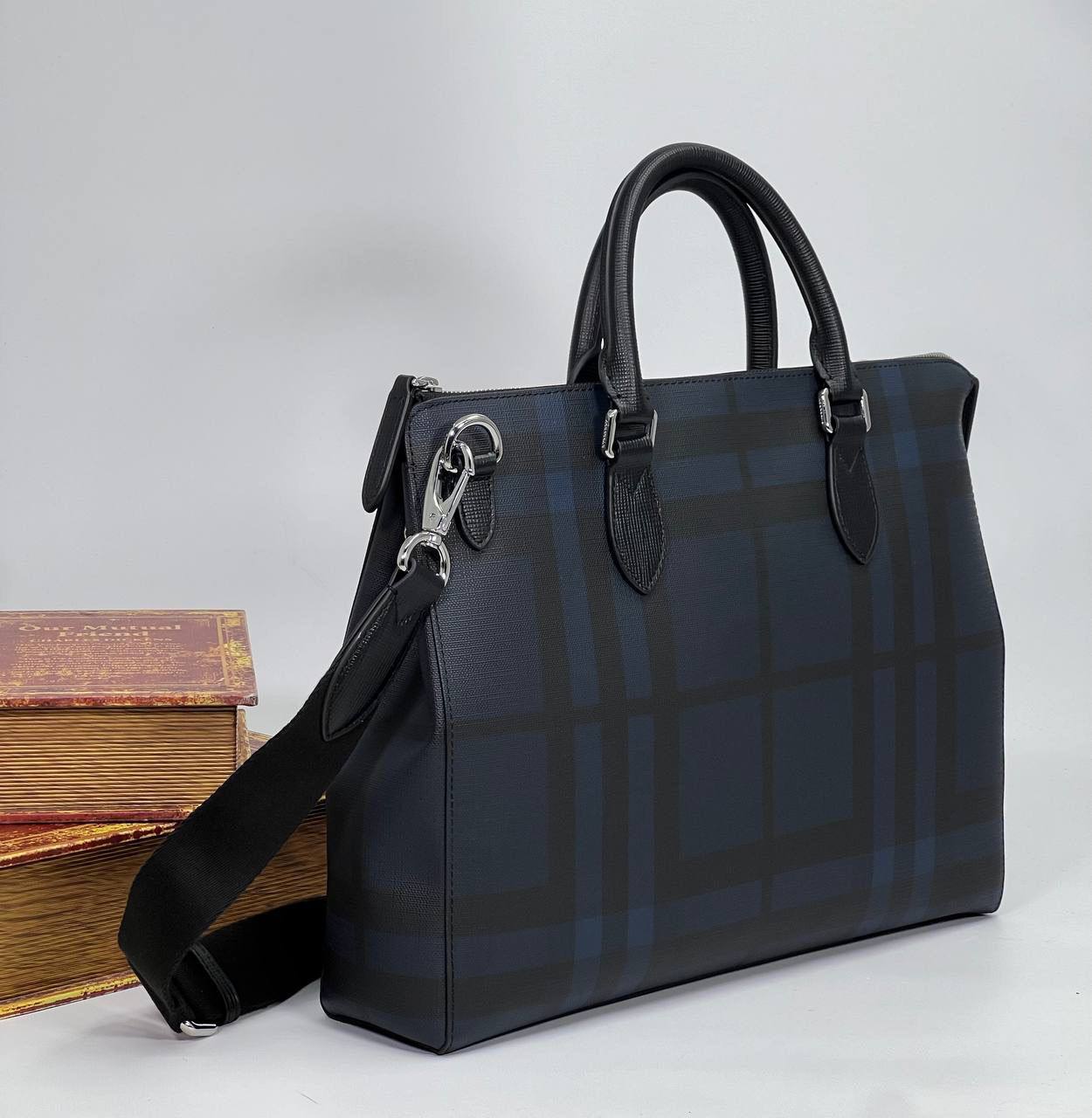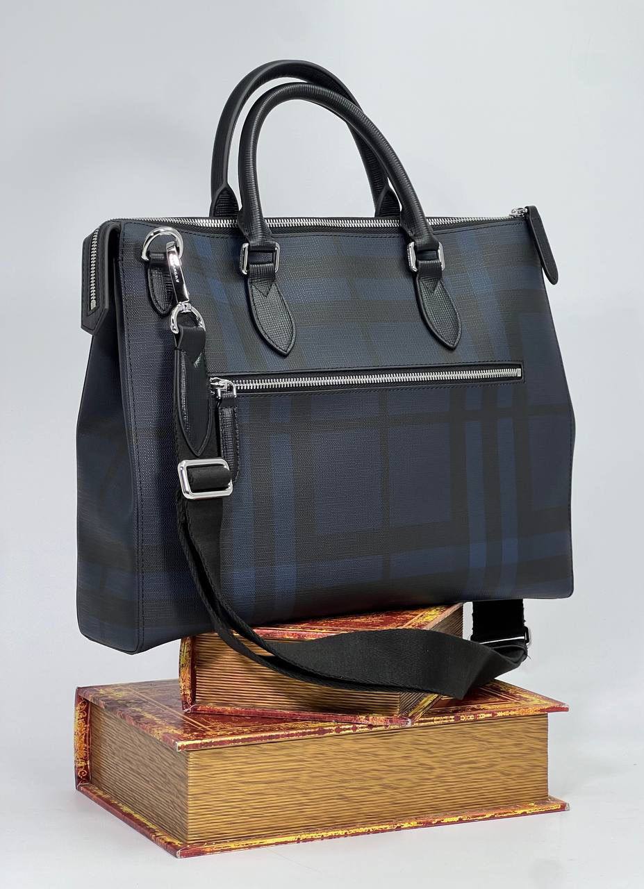 Мужская сумка Burberry LUX-114322 - это стильный аксессуар для мужчин, выполненный в классическом стиле. Сумка имеет темно-синий цвет с клетчатым принтом, который придает ей узнаваемый вид. Она подходит как для повседневного использования, так и для деловых встреч.
