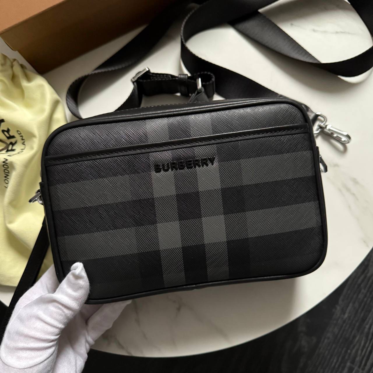Сумка мужская Burberry LUX-115546 - это стильный аксессуар от известного бренда. Сумка выполнена в классическом клетчатом дизайне в сочетании черного и серого цветов, что делает ее универсальной. Такая сумка станет отличным дополнением к повседневному или деловому образу.