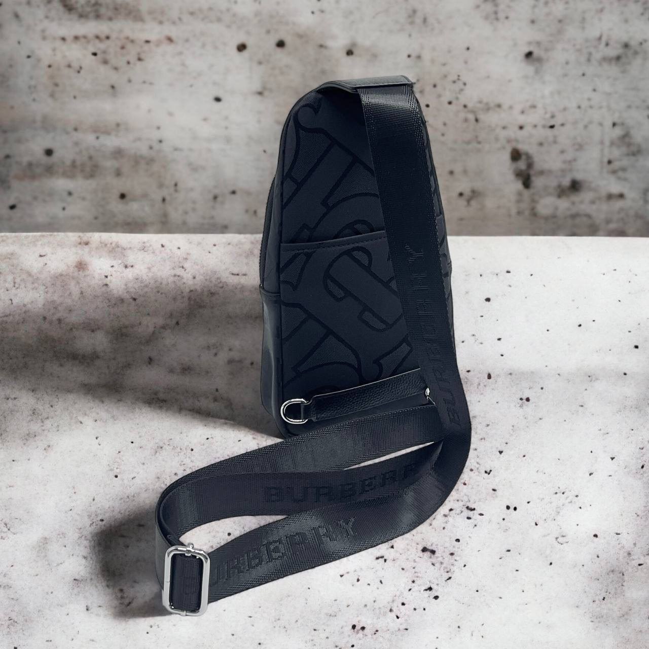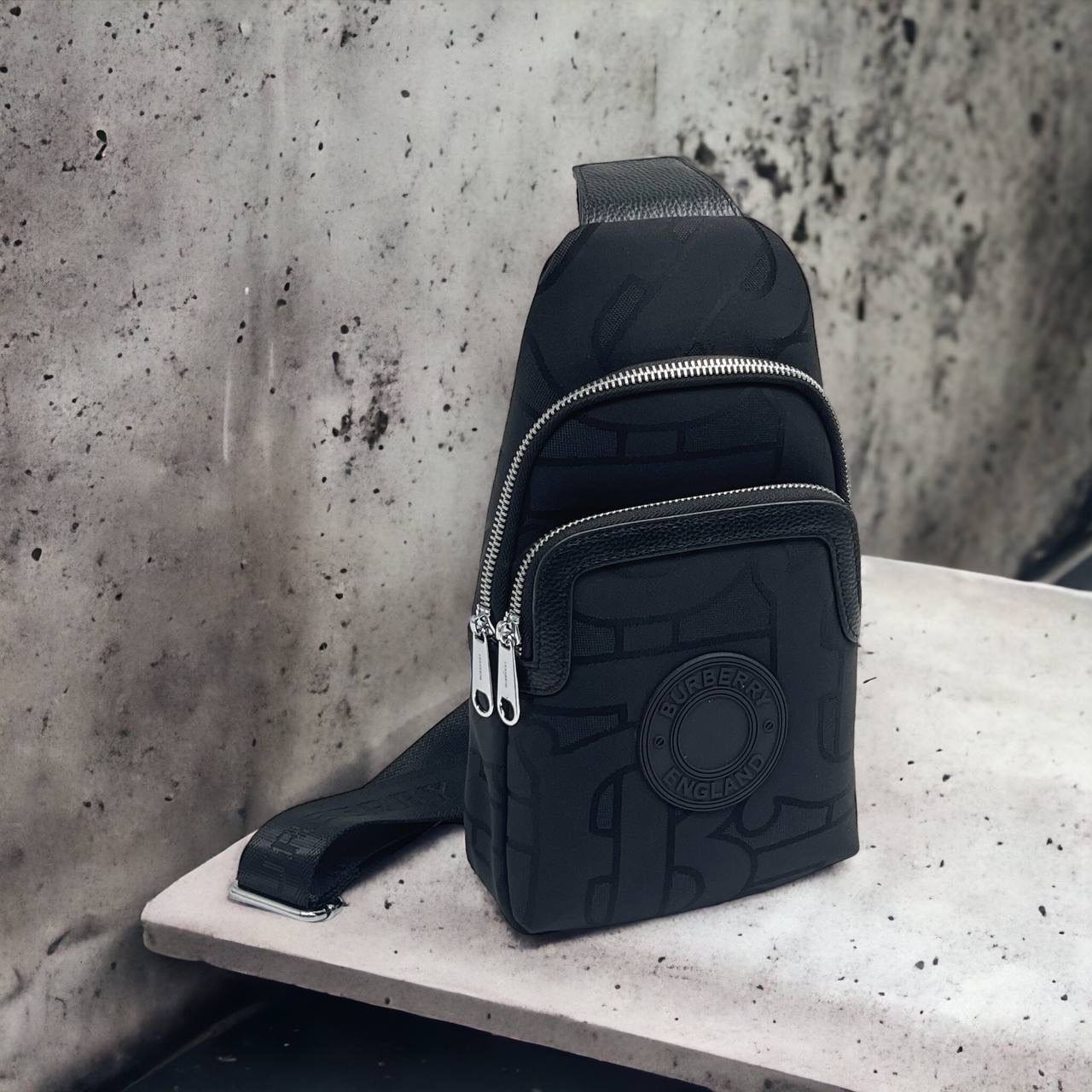 Сумка-слинг Burberry LUX-91832 — стильный аксессуар для повседневного использования, выполненный в черном цвете. Она имеет текстуру с фирменным узором бренда и лаконичный дизайн, который подойдёт для разных образов. Сумка-слинг идеально подходит для ношения необходимых вещей.
