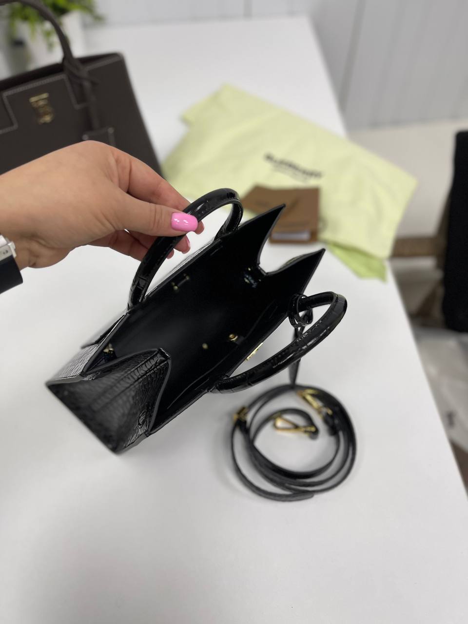 Судя по изображению, это женская сумка Burberry LUX-85109. Сумка выполнена в классическом стиле, чёрного цвета с фактурой под крокодиловую кожу. Данный аксессуар подойдёт для повседневного использования, а также для особых случаев, дополняя образ своей элегантностью.