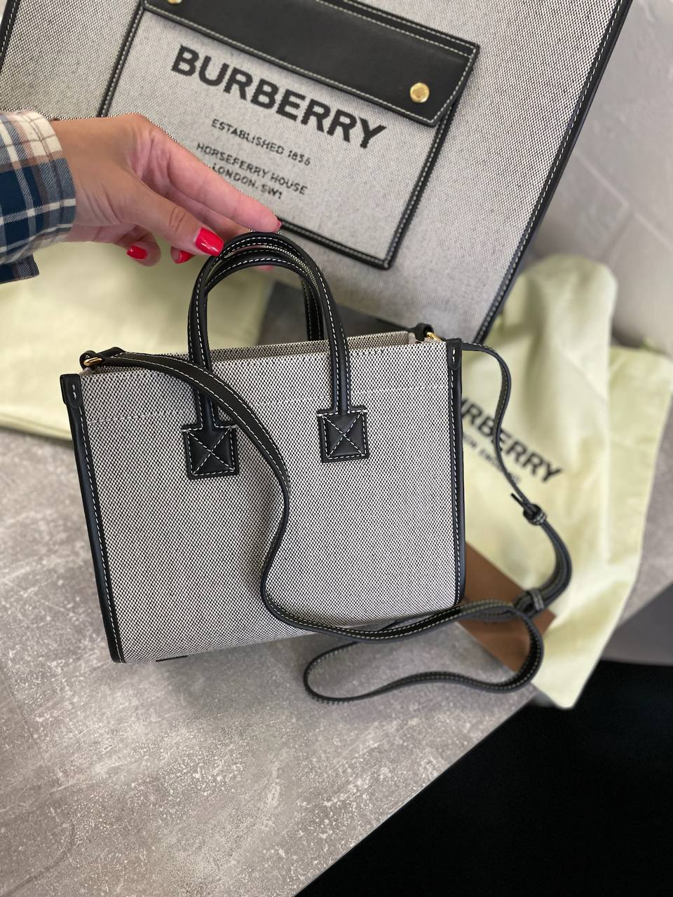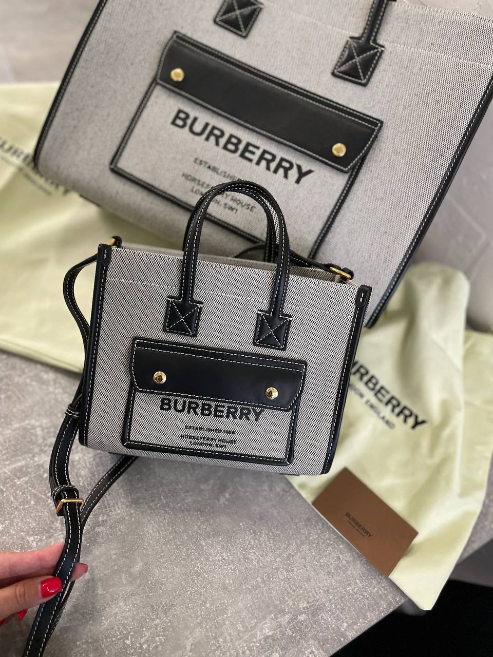 Сумка женская Burberry LUX-110832 — это стильный аксессуар для современной женщины. Сумка выполнена в лаконичном дизайне с классическим сочетанием цветов и текстур. Она подойдет для повседневного использования, подчеркивая элегантность образа.