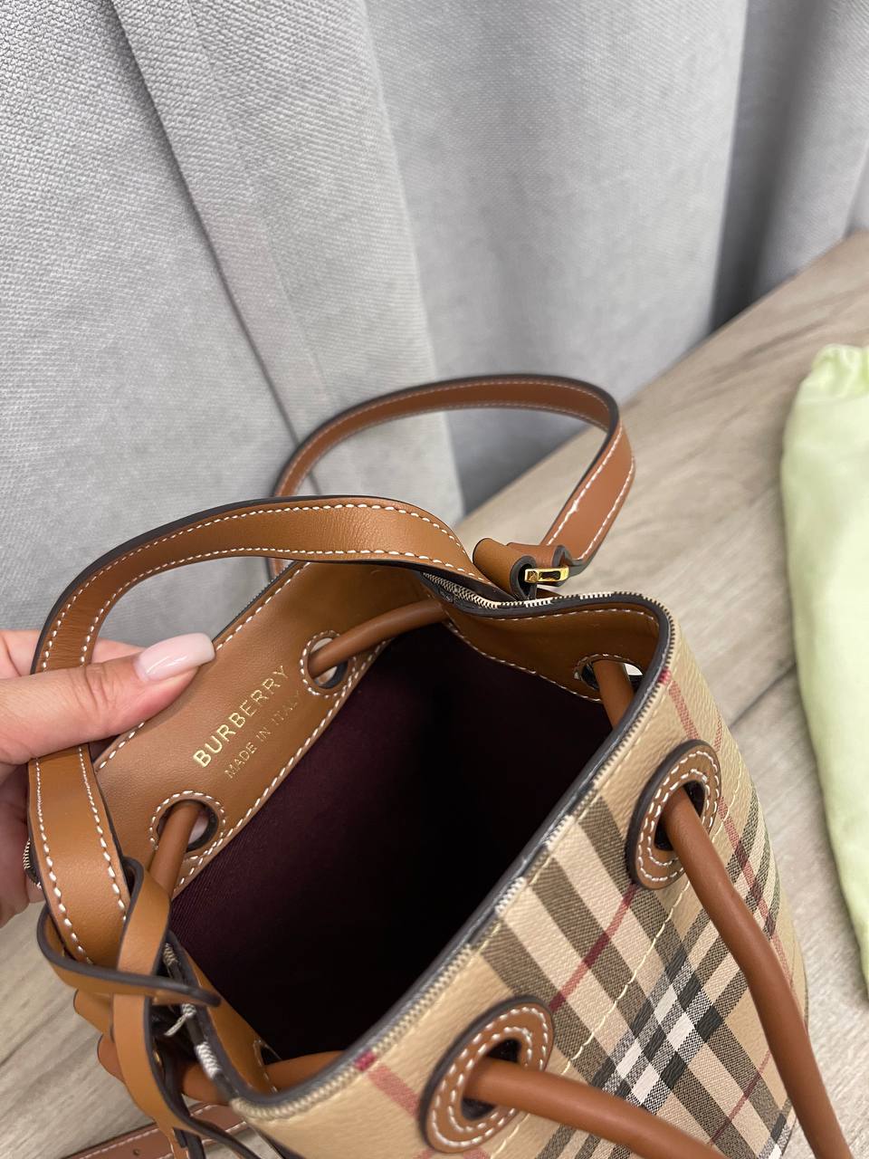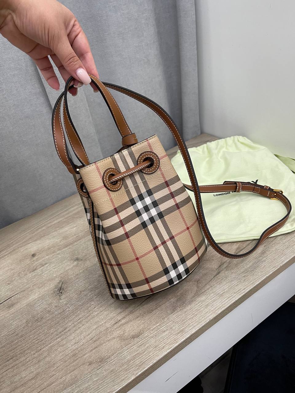 Женская сумка Burberry LUX-110889 представляет собой стильный аксессуар, выполненный в классическом дизайне. Сумка выполнена в фирменную клетку бренда, имеет форму ведра и дополнена кожаными элементами. Эта сумка идеально подходит для повседневного использования, подчеркивая индивидуальность и элегантность.