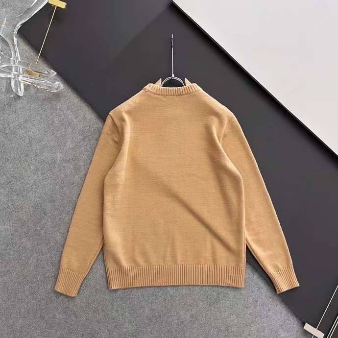 Свитер мужской Burberry LUX-82753 - это стильный предмет гардероба от известного бренда. Свитер выполнен в классическом стиле с круглым вырезом и длинными рукавами, что делает его универсальным для различных образов. Основной цвет – светло-коричневый с контрастным белым логотипом бренда на груди.