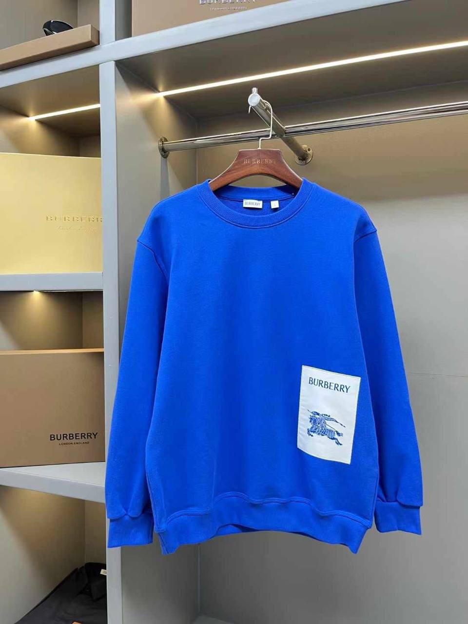Свитшот Burberry LUX-113847 — это стильный элемент гардероба, выполненный в классическом стиле. Свитшот насыщенного синего цвета с небольшим контрастным логотипом бренда на груди. Этот свитшот идеален для создания повседневных образов.