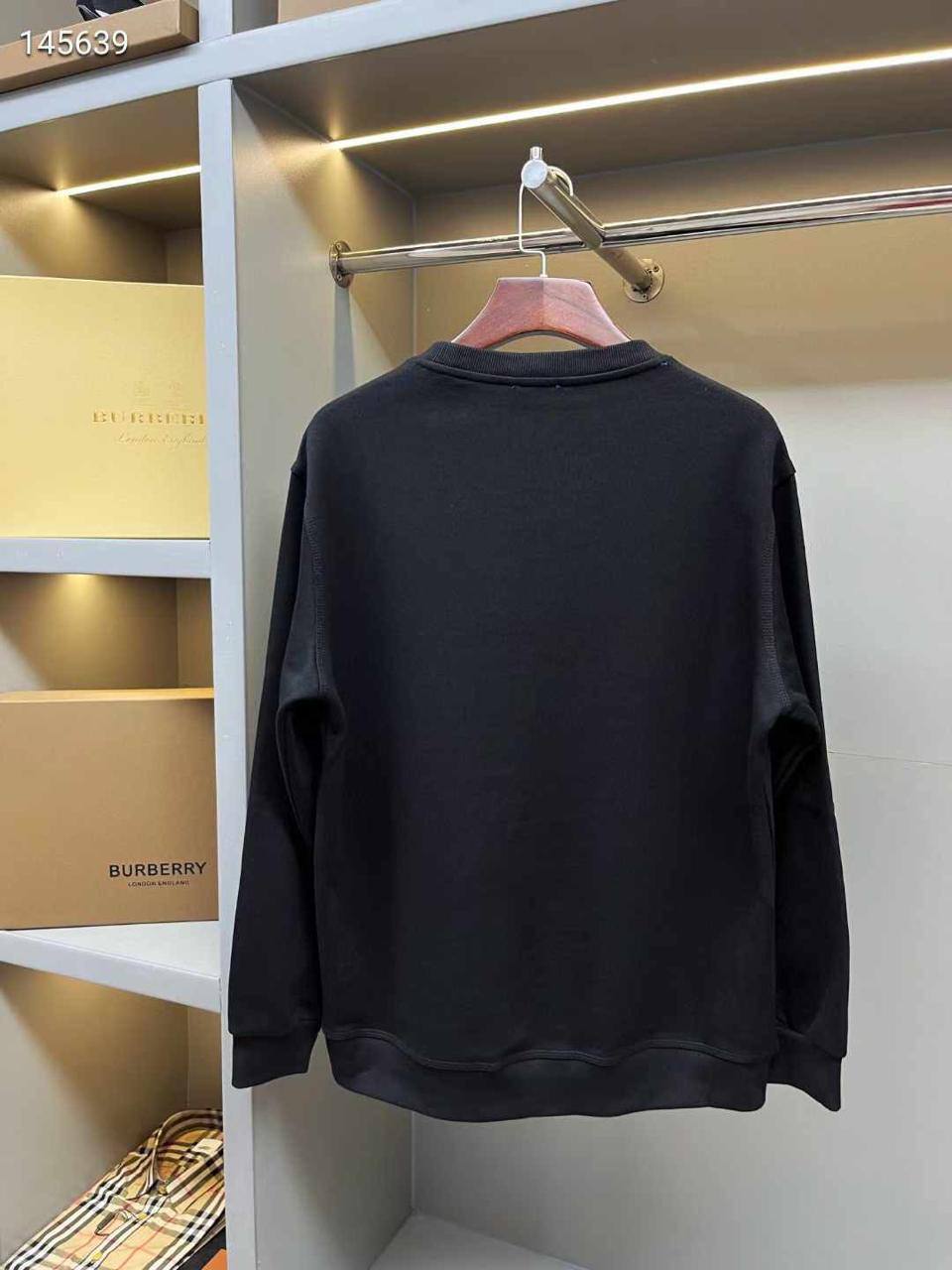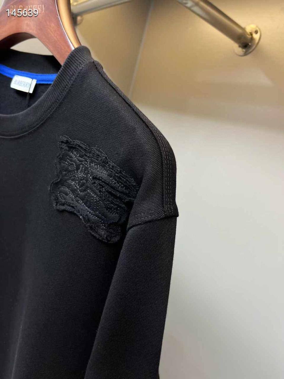 Толстовка Burberry LUX-110230 – это стильная черная толстовка. Она имеет классический круглый вырез горловины и длинные рукава. Декоративные элементы отсутствуют, кроме небольшого нашитого элемента на груди.