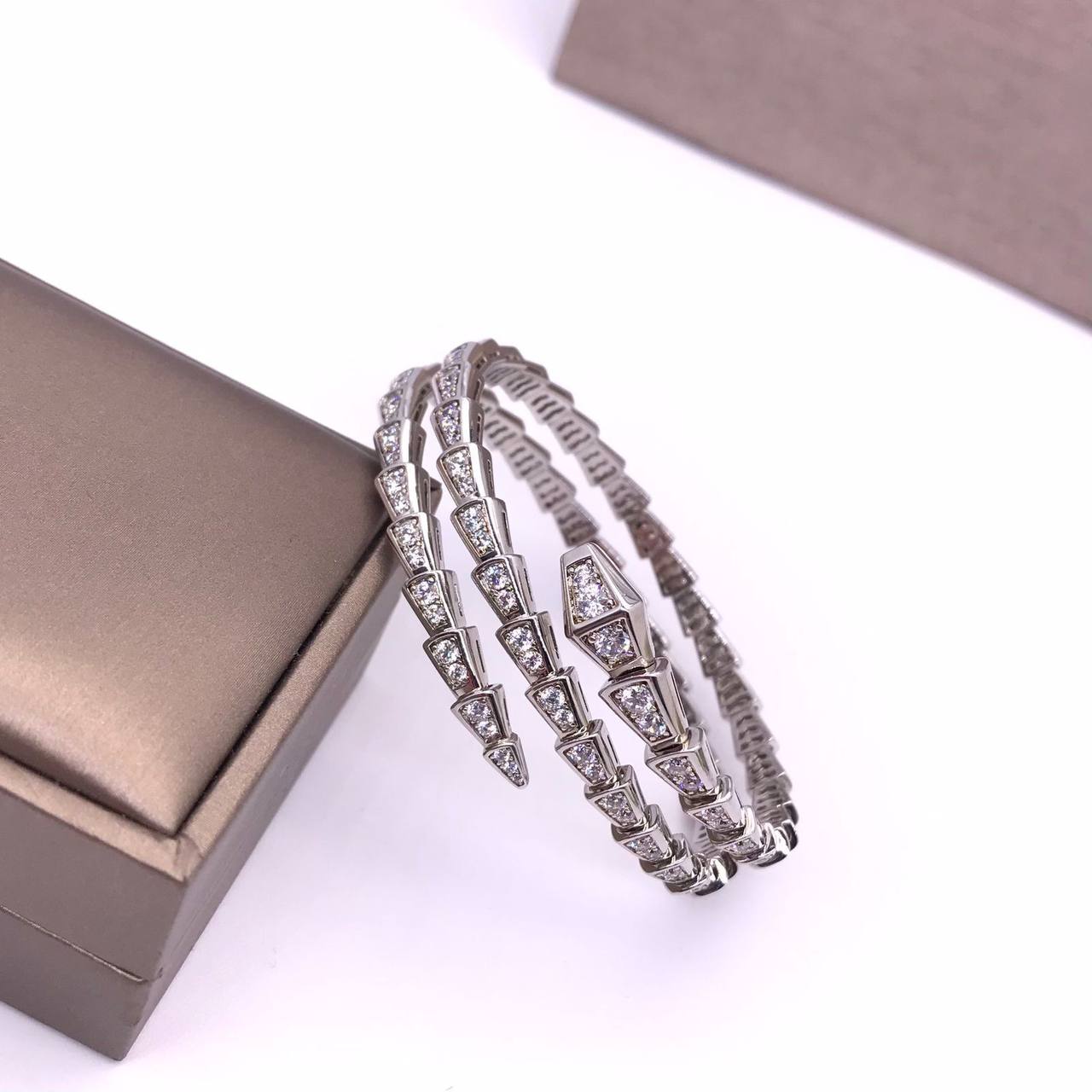 Браслет Bvlgari LUX-113789 — это изысканное украшение, выполненное в узнаваемом стиле Bvlgari. Браслет в форме змеи, выполненный в серебристом цвете, инкрустирован сверкающими камнями. Он станет отличным дополнением к любому образу, придавая ему элегантность и изысканность.