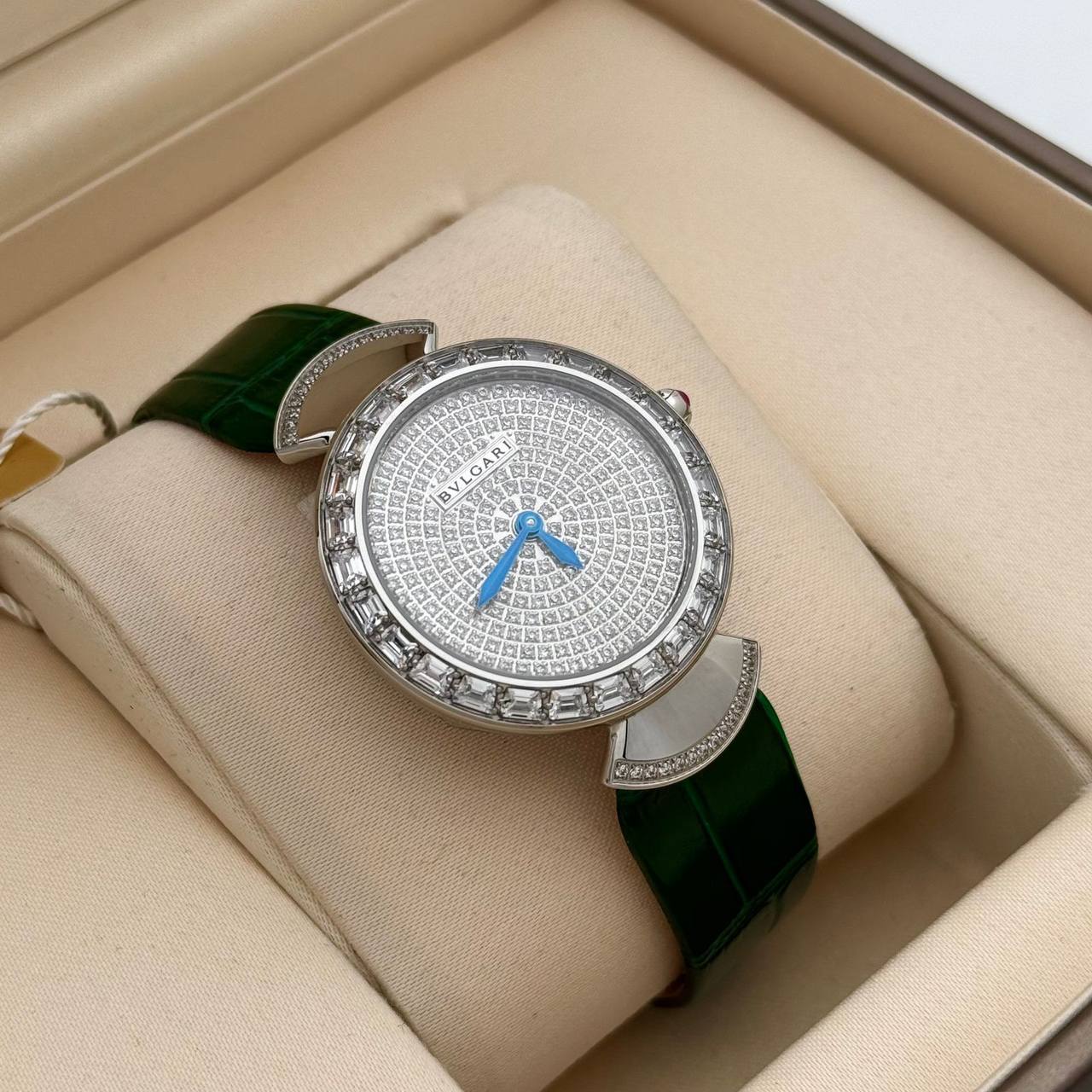 Часы Bvlgari LUX-114121 – это элегантные женские часы, сочетающие в себе роскошь и изысканность. Круглый циферблат украшен бриллиантами, придающими часам неповторимый блеск. Зеленый кожаный ремешок гармонично дополняет дизайн, делая часы подходящими для особых случаев.