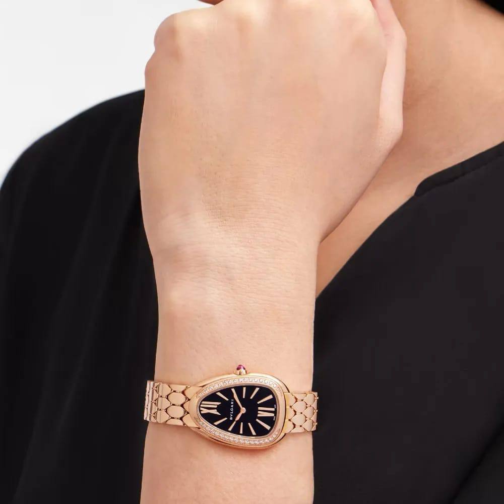 Элегантные часы Bvlgari Serpenti Seduttori – это воплощение роскоши и изысканности. Их уникальный дизайн, вдохновленный змеей, придает образу неповторимый шарм. Это аксессуар для тех, кто ценит стиль и внимание к деталям.
