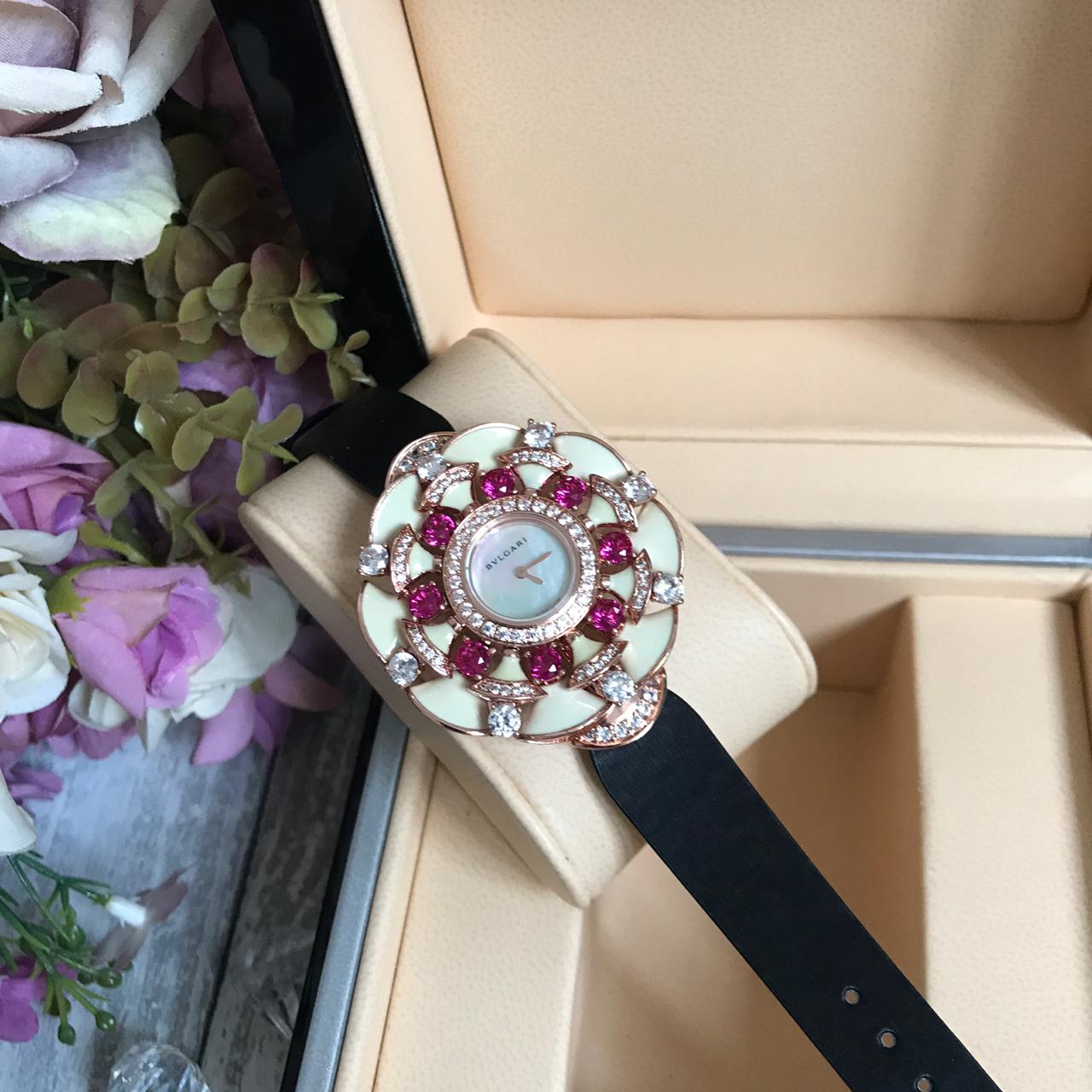 Часы женские Bvlgari LUX-19130 – это изысканный аксессуар, который подчеркнет вашу женственность и утонченный вкус. Элегантный дизайн в форме цветка с инкрустацией камнями делает эти часы настоящим произведением искусства, идеально подходящим для особых случаев и ежедневного ношения.