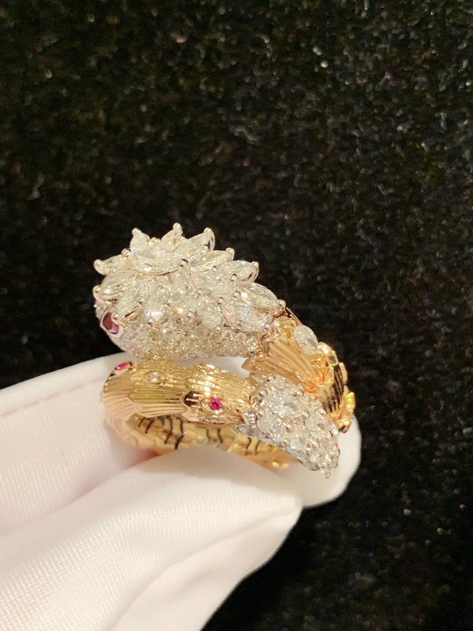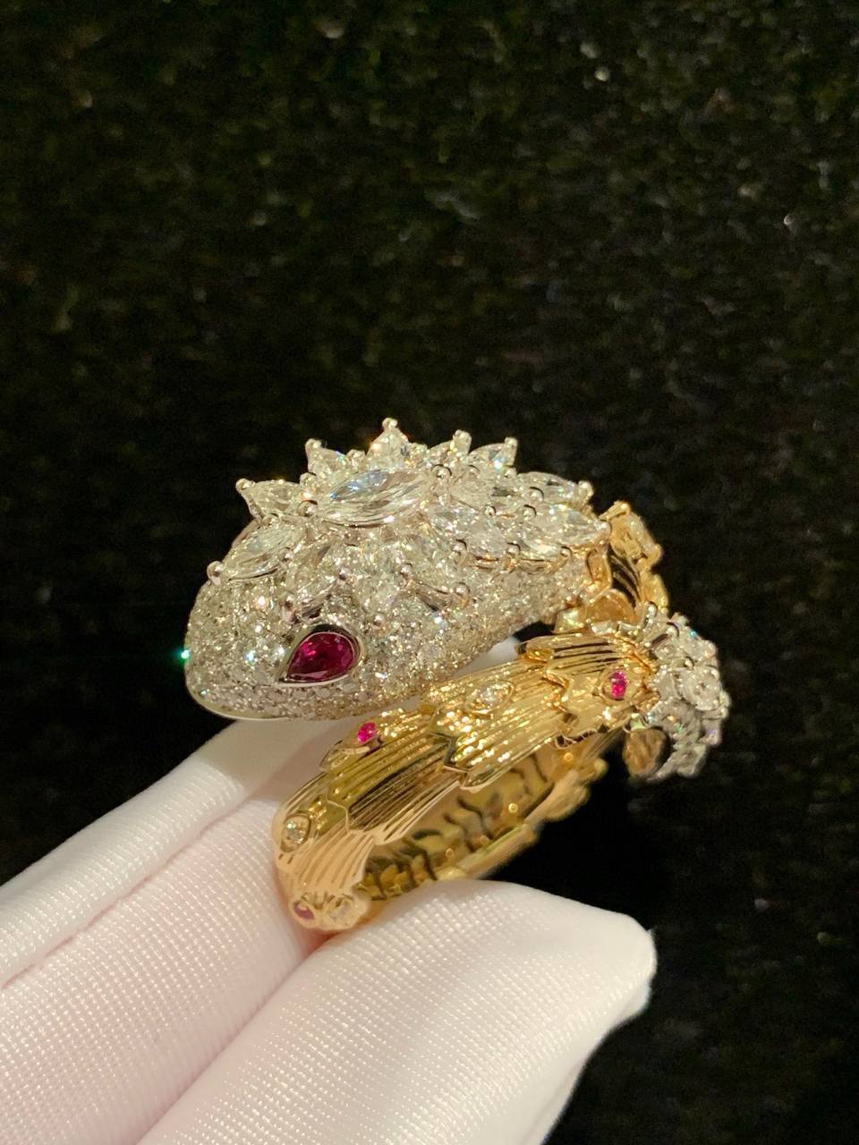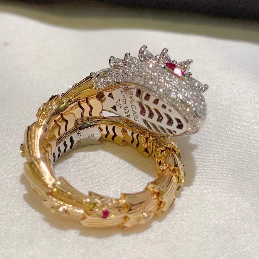 Кольцо Bvlgari LUX-118120 – это изысканное украшение, воплощающее роскошь и элегантность. Кольцо выполнено в виде змеи, что придает ему уникальный и запоминающийся вид. Золотистый цвет сочетается с блеском драгоценных камней, создавая неповторимый образ.