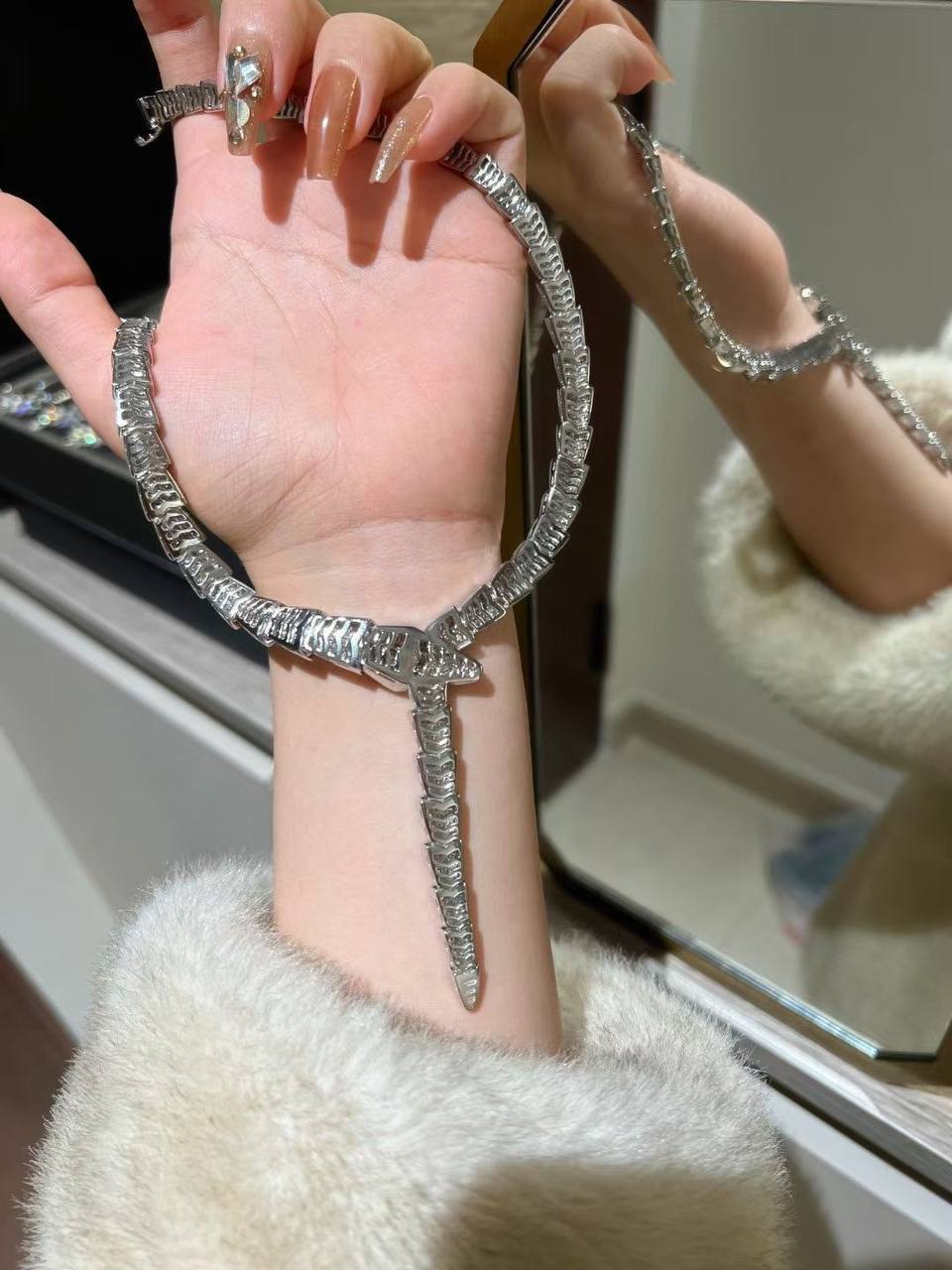 Колье Bvlgari LUX-121013 – это роскошное и элегантное украшение, которое подчеркнет изысканный вкус своей обладательницы. Оно выполнено в форме змеи, что придает ему оригинальность и запоминающийся вид. Это колье станет ярким акцентом в вашем образе.