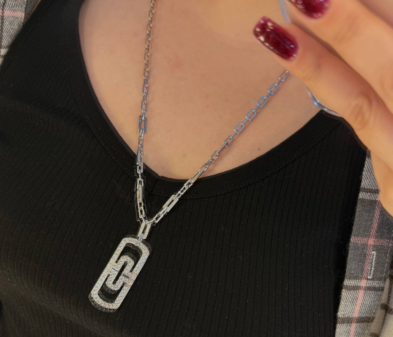 Подвеска Bvlgari LUX-117663 представляет собой изысканное украшение в современном стиле, которое подчеркнет вашу индивидуальность. Серебряный кулон выполнен в виде прямоугольника с уникальным дизайном, дополненным цепочкой. Идеально подходит для повседневной носки и особых случаев.