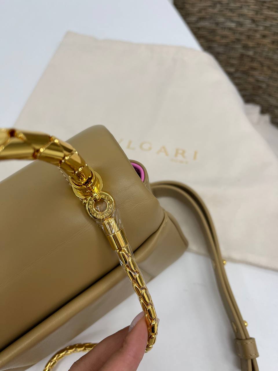 Сумка женская Bvlgari LUX-87170 выполнена в элегантном стиле. Эта сумка выполнена в нейтральном, бежевом цвете, с акцентом на золотистые детали, что придает ей изысканный вид. Ее можно носить как в повседневной жизни, так и на особые мероприятия.