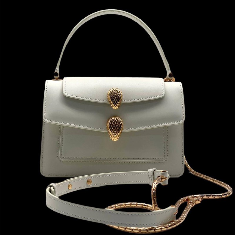 Bvlgari сумка женская LUX-50277 – это элегантная модель, которая сочетает в себе классический дизайн и узнаваемый стиль бренда. Аккуратные формы и изысканная фурнитура в виде голов змей придают этой сумке роскошный вид. Идеальный аксессуар для тех, кто ценит утонченность и безупречное качество.