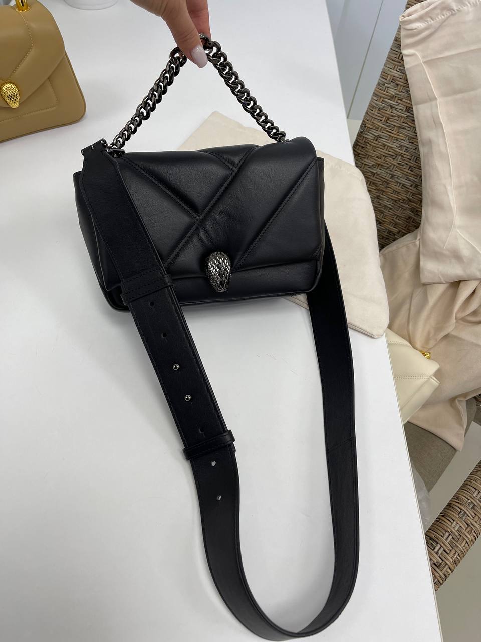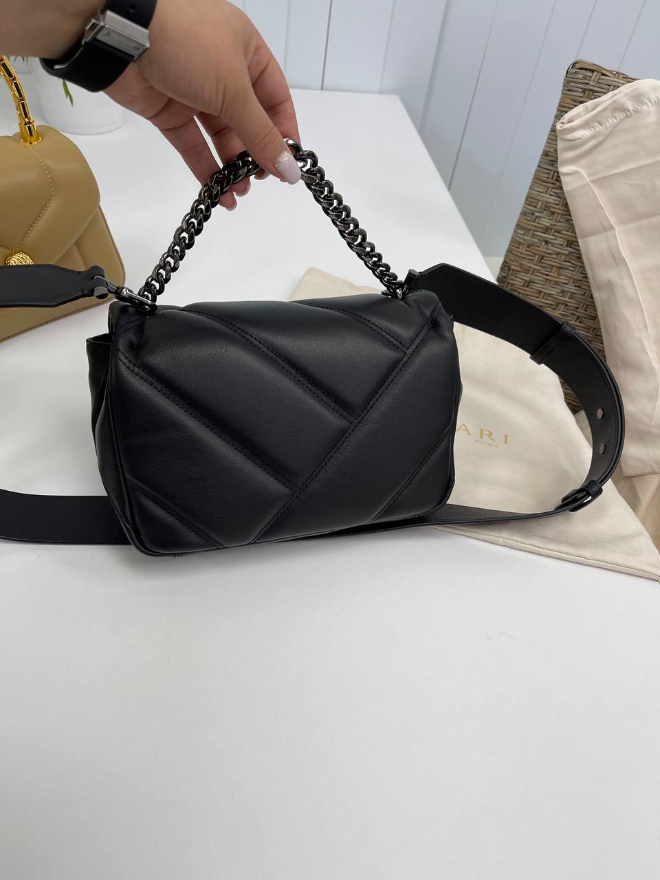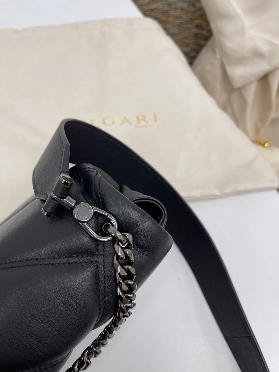 Женская сумка Bvlgari LUX-87168 выполнена в классическом стиле. Черный цвет и стеганая текстура придают элегантность, а цепочка добавляет изысканности. Эта сумка подходит для повседневной носки, а также для особых случаев.