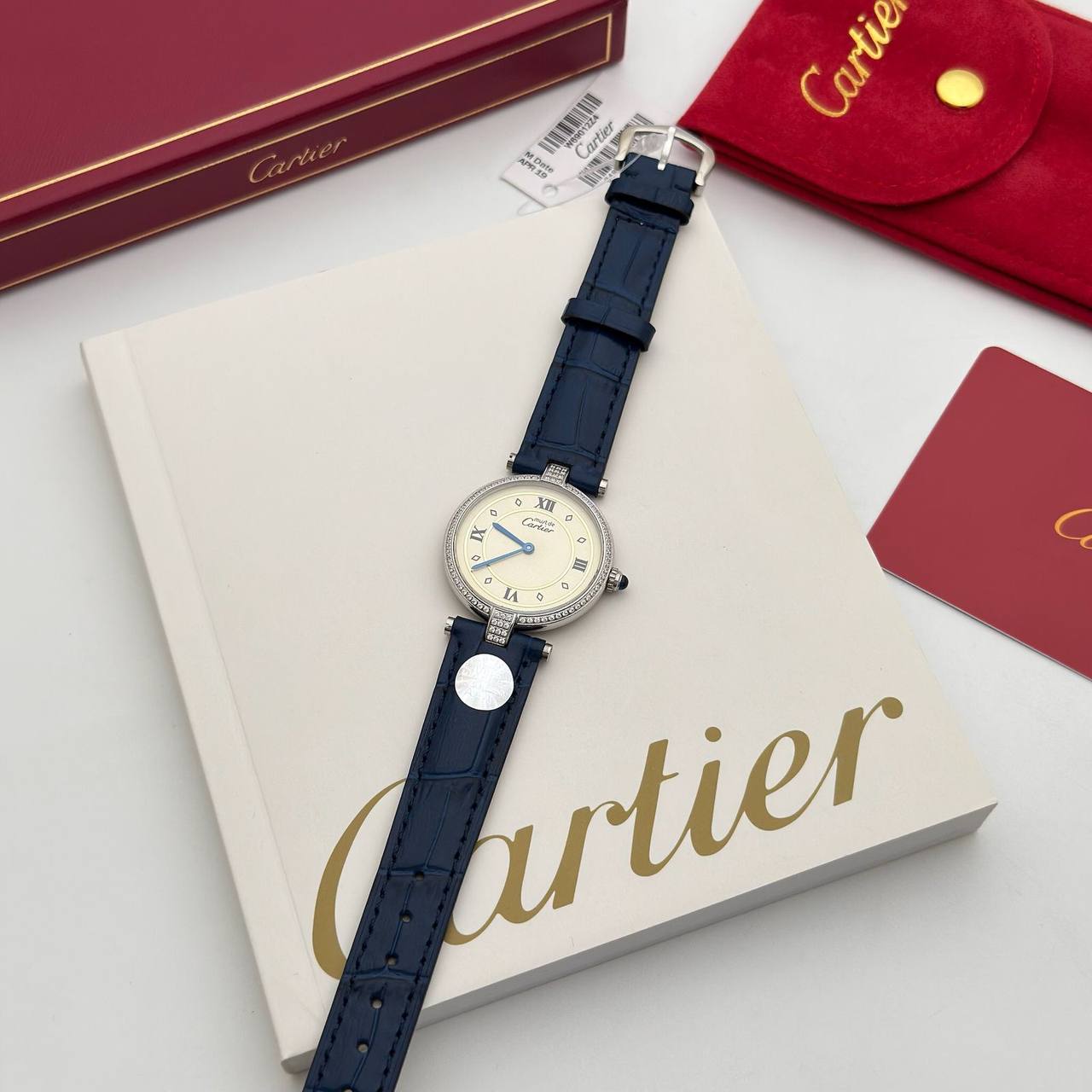 Часы Cartier LUX-118172 — это изысканный аксессуар в классическом стиле. Часы имеют круглый циферблат белого цвета с римскими цифрами, а также синий ремешок из кожи. Это элегантное дополнение к любому образу.