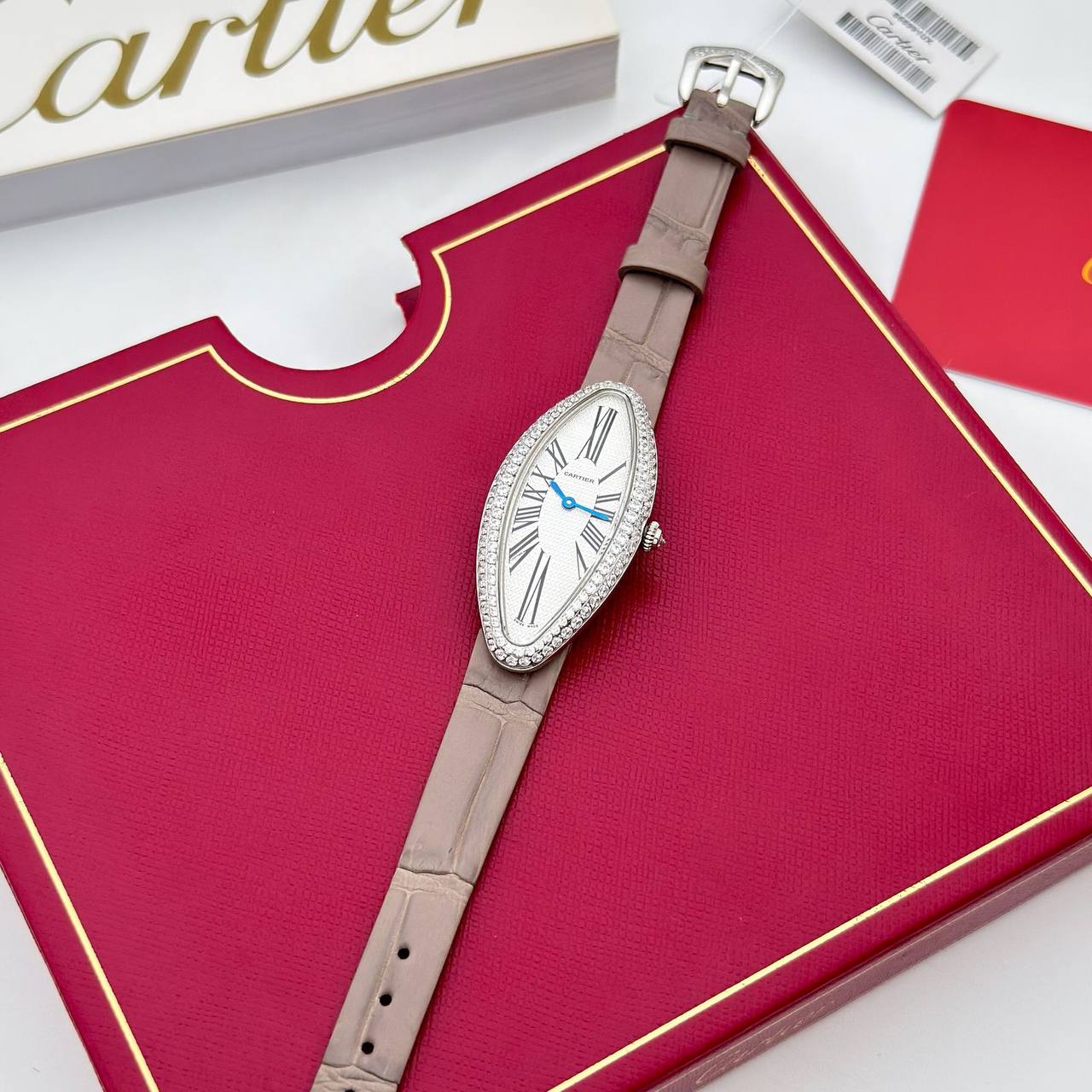 Часы Cartier LUX-118174 представляют собой изысканное сочетание стиля и роскоши. Часы выполнены в элегантном дизайне с овальным циферблатом, украшенным блестящими камнями. Ремешок из кожи гармонирует с общим стилем часов, делая их идеальным аксессуаром для повседневной носки или особых случаев.