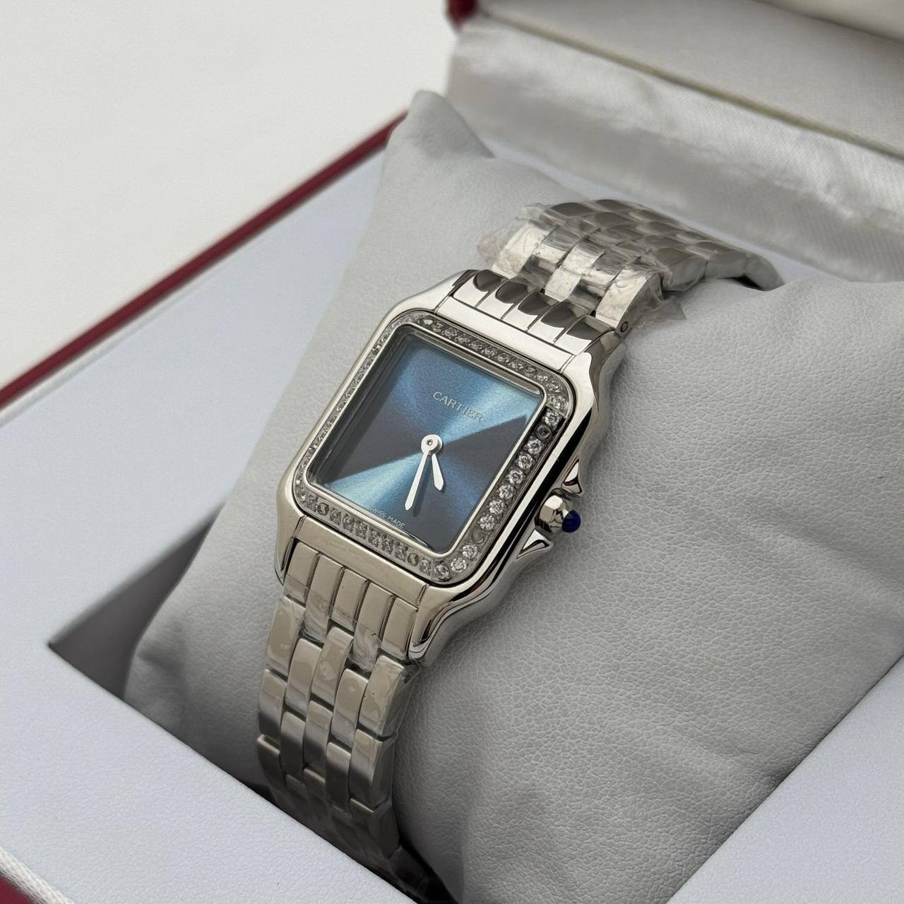 Часы 27 мм Cartier LUX-115941 представляют собой изысканный аксессуар для женщин, сочетающий в себе роскошь и элегантность. Эти часы от знаменитого бренда Cartier выполнены в классическом стиле с квадратным корпусом, украшенным бриллиантами, и браслетом из металла. Синий циферблат добавляет изюминку дизайну, делая часы идеальным дополнением к любому образу.