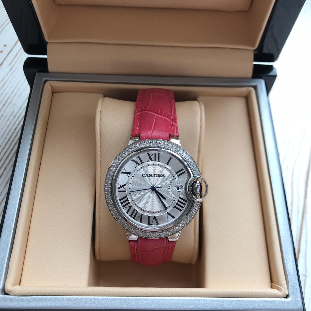 Женские часы Cartier LUX-15962 представляют собой элегантное и утонченное украшение, сочетающее классический дизайн с роскошными деталями. Их изысканный циферблат с римскими цифрами и синими стрелками, обрамленный ободком, усыпанным камнями, придает часам особую привлекательность. Яркий розовый ремешок из кожи с тиснением под аллигатора делает их не только стильным аксессуаром, но и выразительным элементом образа.