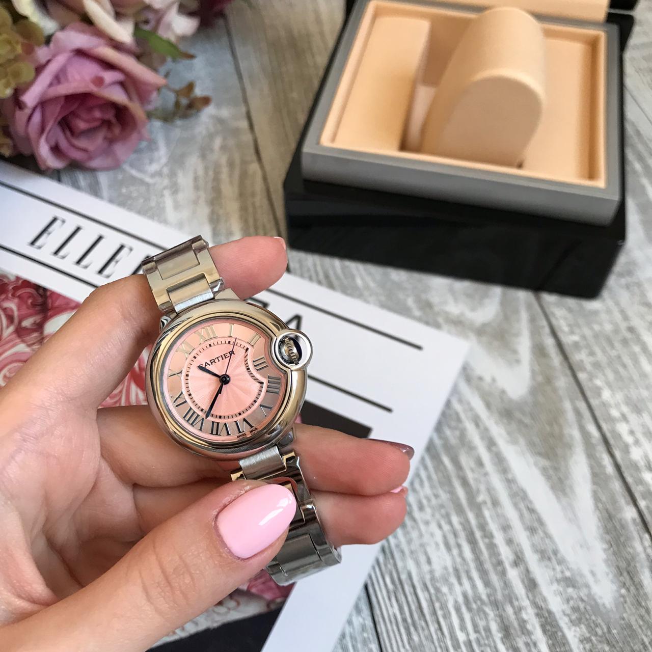Часы женские Cartier LUX-19848 – это элегантный аксессуар, сочетающий в себе классический дизайн и изысканность. Нежный розовый циферблат с римскими цифрами и серебристый металлический браслет создают утонченный образ. Эти часы идеально подойдут для современных женщин, ценящих роскошь и безупречный стиль.